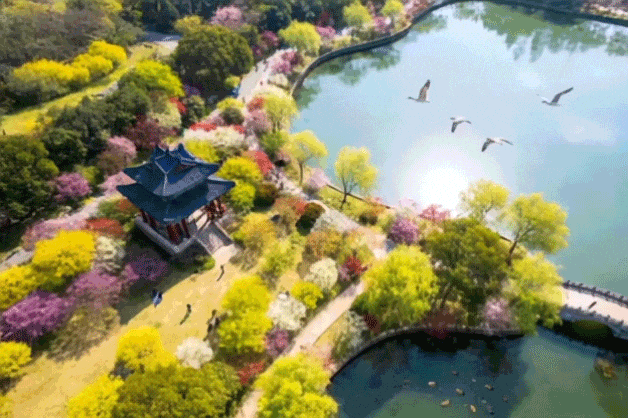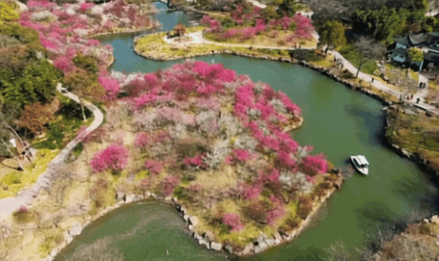 岛上的桃花、梨花、野蔷薇次第开放,与浩渺洞庭湖相映成趣