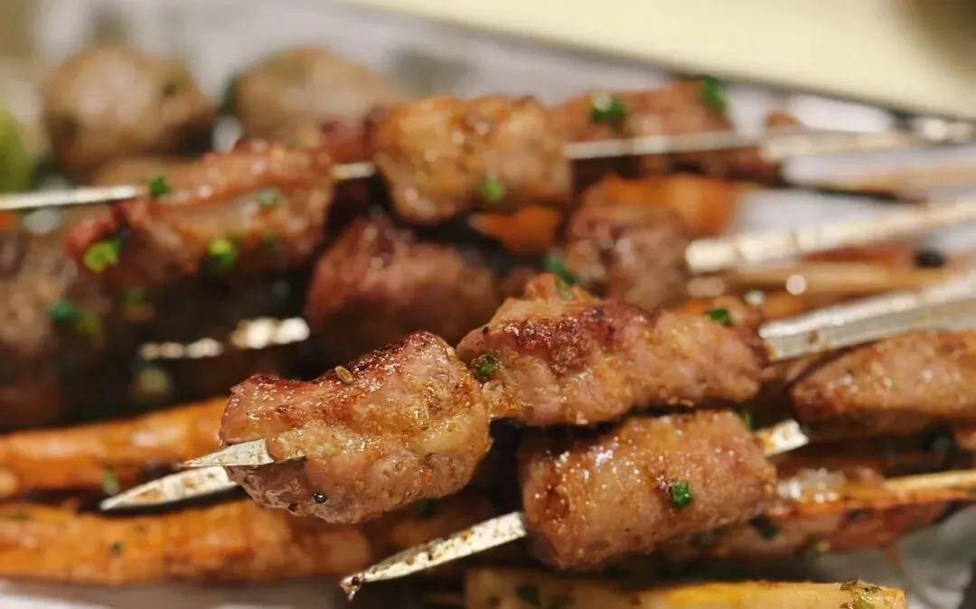烈火牛肉:物如其名,脾气火爆。猛火是其灵魂,快烤是其绝技。辣椒面慷慨地包裹着鲜嫩牛肉,入口的瞬间,仿佛一场小型的火焰派对在舌尖炸开,是嗜辣勇士的必选勋章。