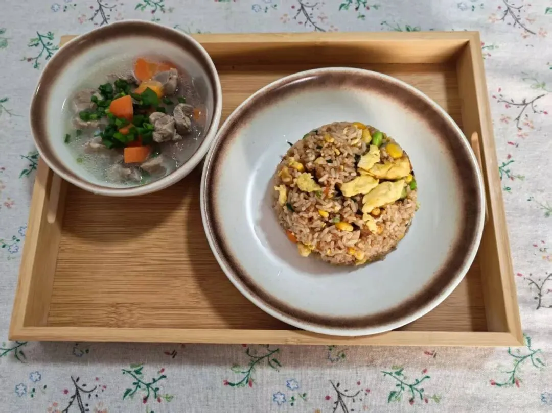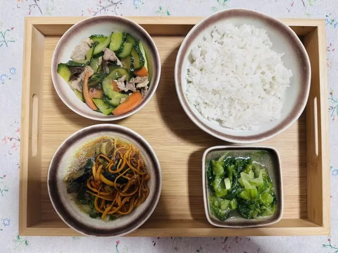 炒碎油麦菜、荷包蛋萝卜丝汤