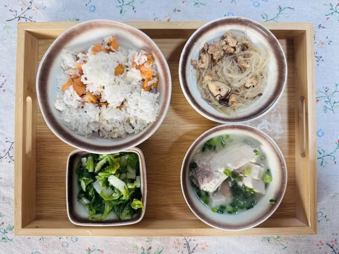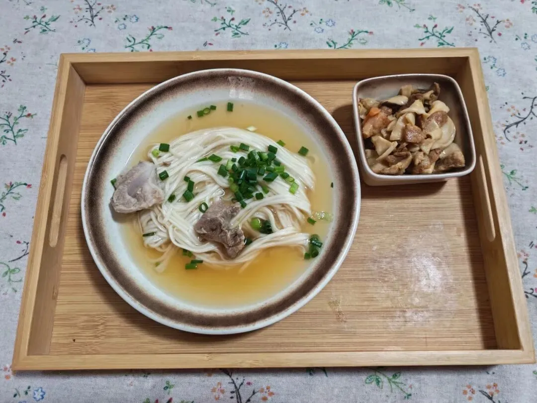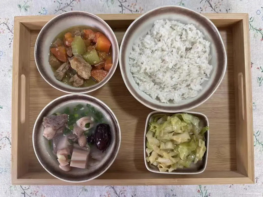 韭菜炒豆芽、铁棍淮山筒骨汤