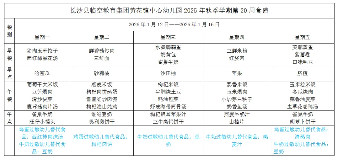 【营养食谱】长沙县临空教育集团黄花镇中心幼儿园第十九周营养食谱回顾&下周食谱预告