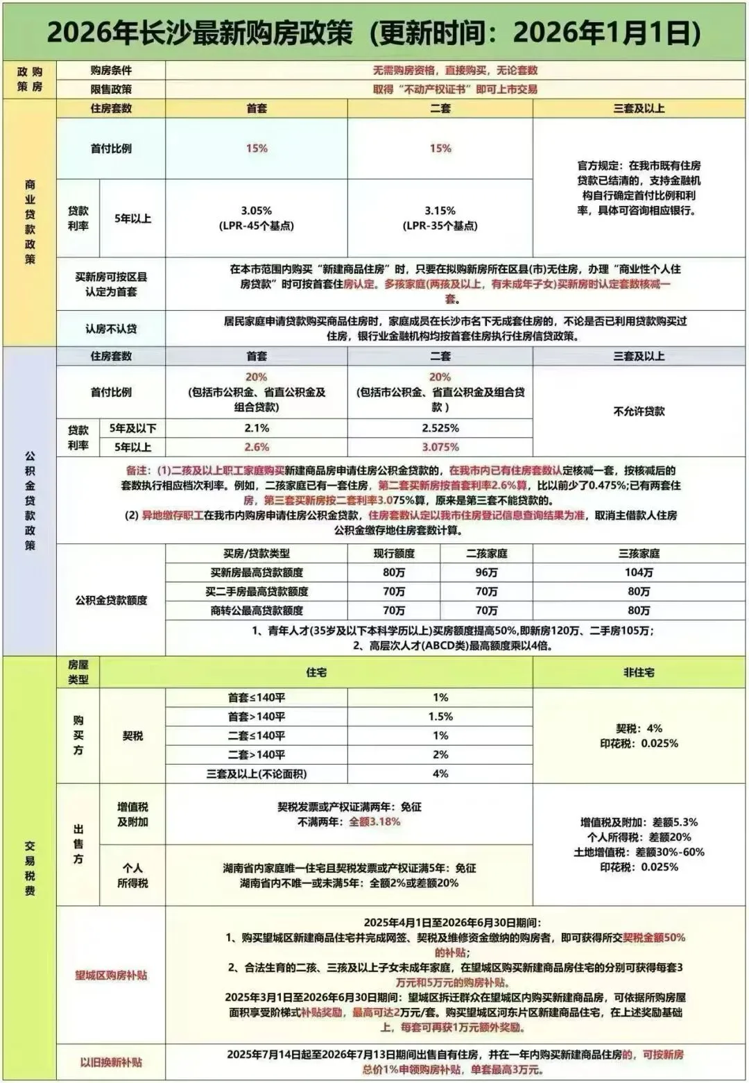 附长沙最新购房政策以及缴税政策: