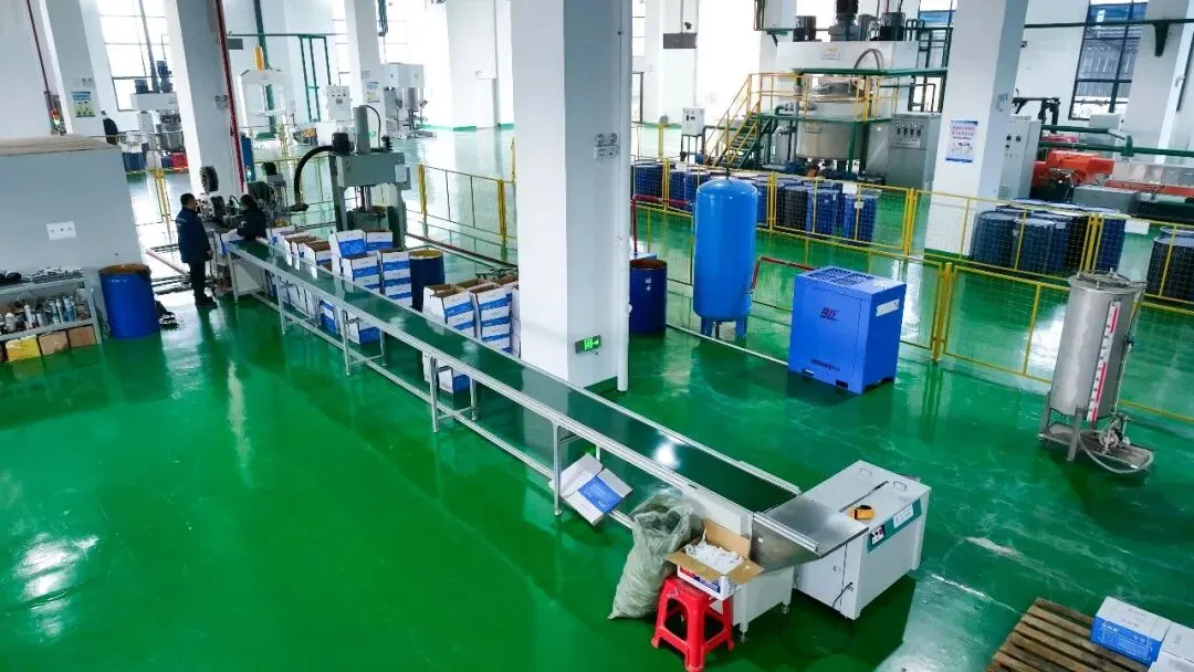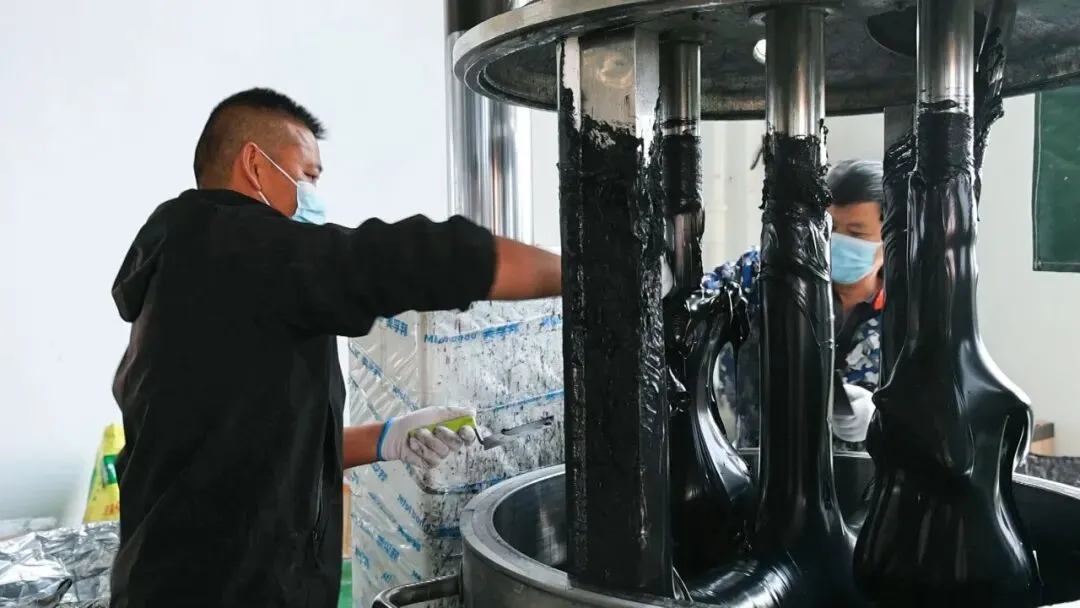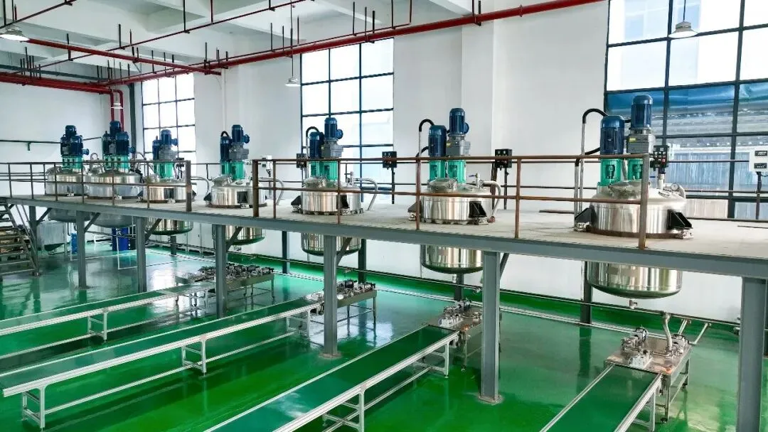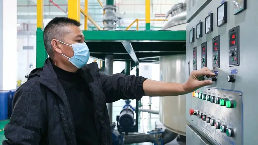 在11551平方米的硅酮胶分装车间,3条智能化生产线与4名工人协同作业。生产线负责原料搅拌、成品包装、转运等重体力活,员工专注编程操控与质量检测,实现“机器换人”高效生产。
