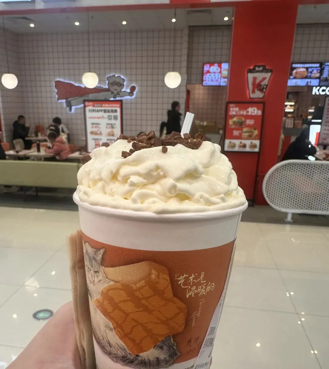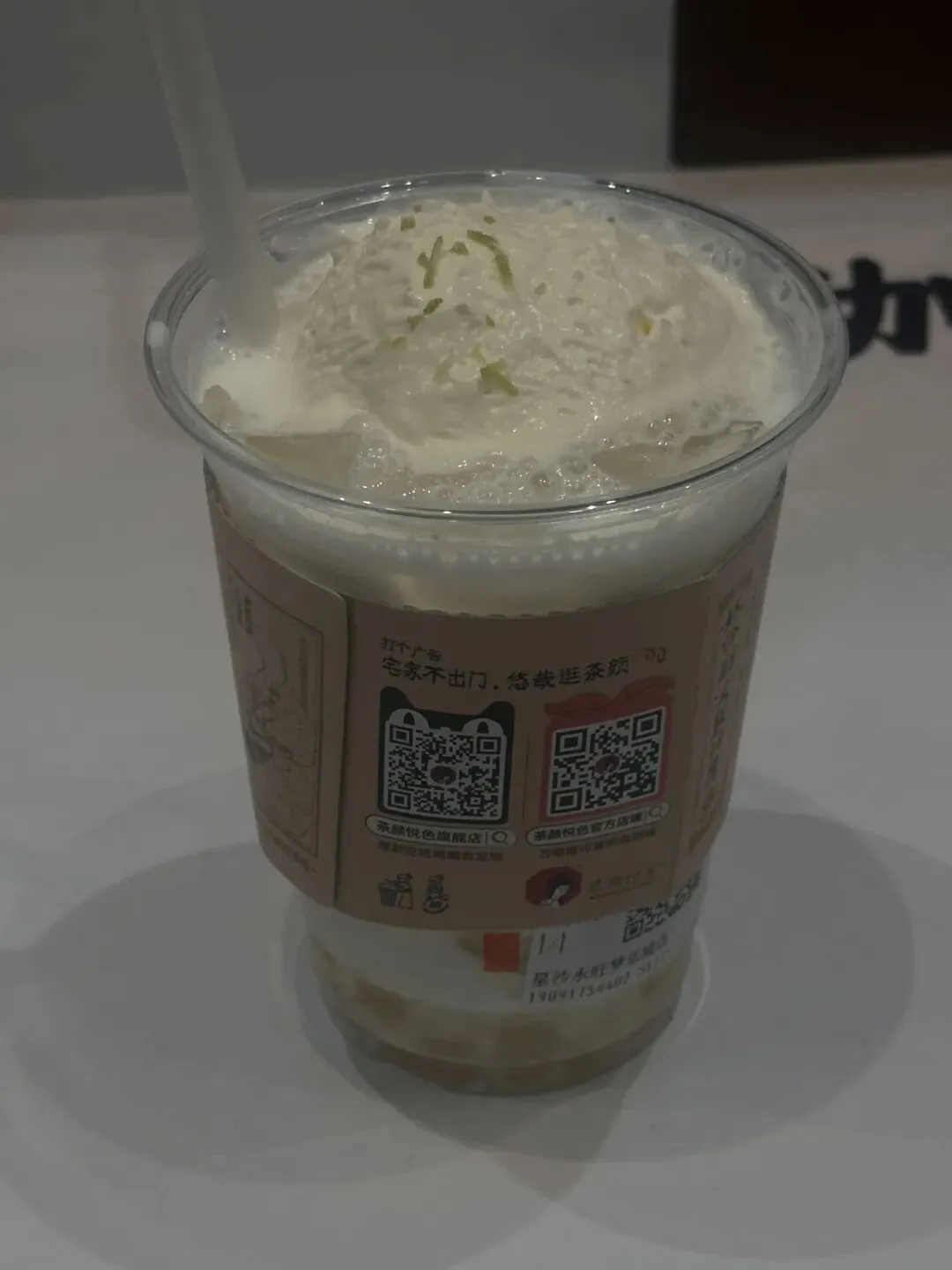点单方式有别于目前市面上的其他品牌,线上点完后还需现场人工核销,多了一道步骤。菜单上看了一圈,最终选了“秋果半遮面”。制作比预想的快很多,不过两三分钟,一杯清透的饮品便递到手中。第一口下去,确实有惊喜,秋果的果粒脆甜清润,顶上冰淇淋柔滑绵密,层次交融得恰到好处。于是这两日前前后后喝了四杯,抱着“既来之则喝足”的念头,恨不得尝遍招牌。但后续几杯,却觉得与别家茶饮相似,少了些惊喜。