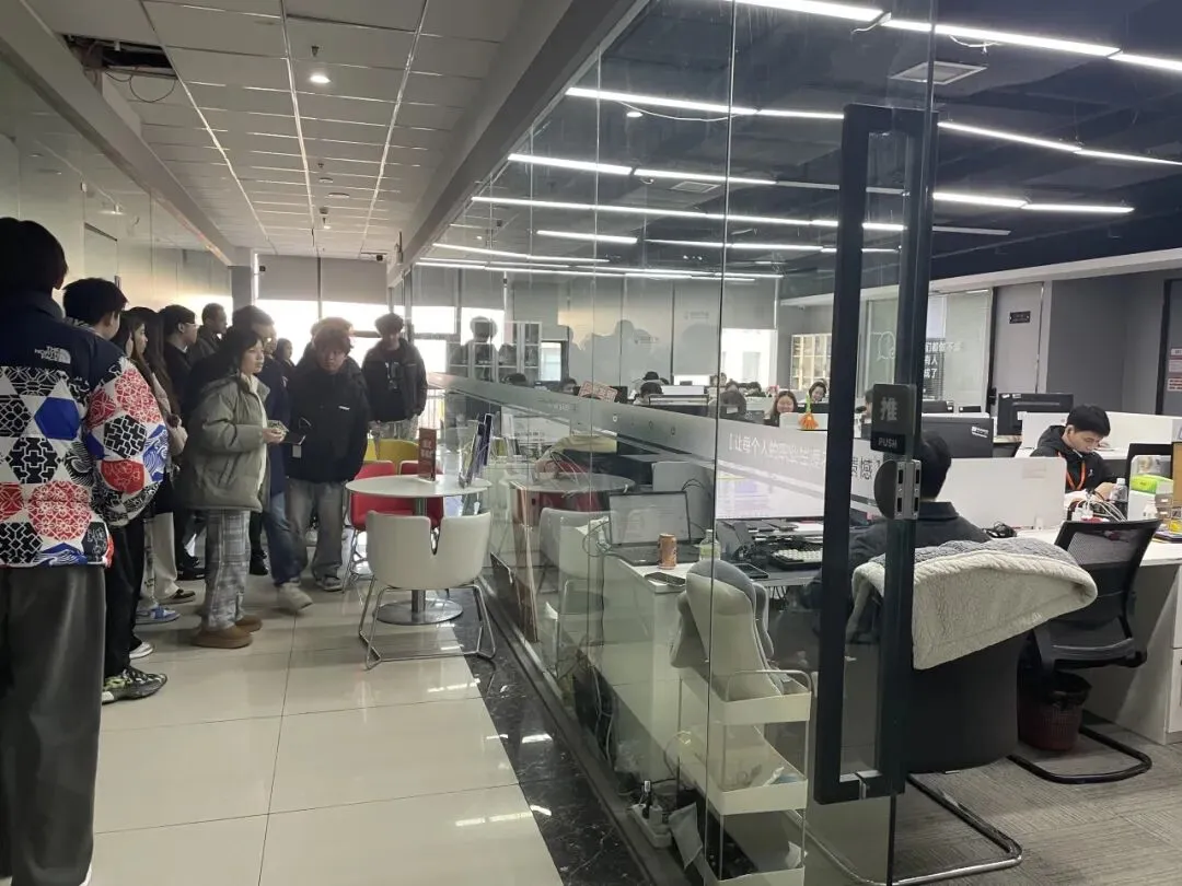 在工作人员的引导下,同学们首先参观了公司的办公区域。开放式的工位布局、明亮舒适的办公环境、专注而活跃的工作氛围,让同学们亲身感受到了科技公司特有的自由与创意气息。