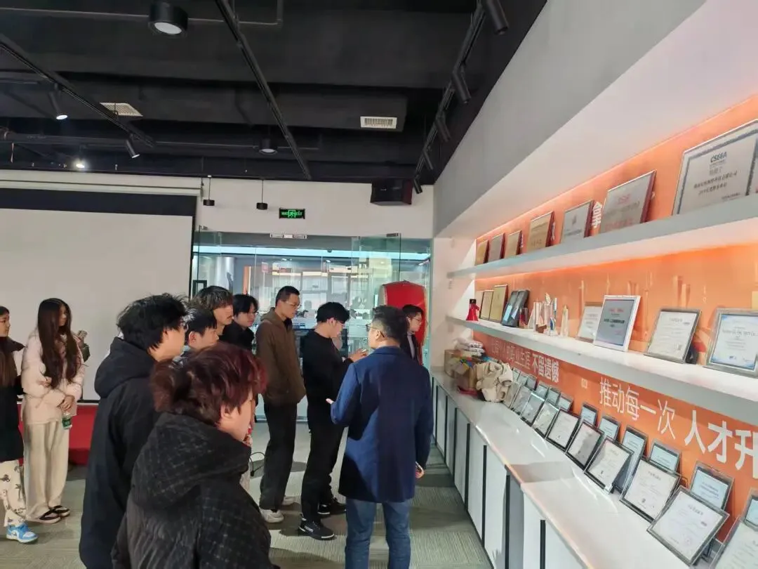 从初创时的梦想,到如今在领域的扎实耕耘与卓越贡献,每一张证书、每一座奖杯背后,都凝结着团队的努力与智慧。同学们驻足观看,深刻体会到一家优秀企业的成长之路,也感受到了扎实技能与持续创新所带来的价值与荣耀。