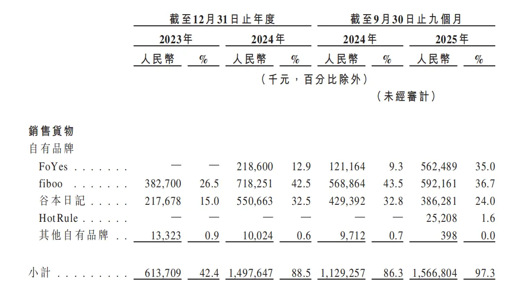 fiboo、谷本日记及FoYes这三个品牌,在产品上线后,均快速实现累计销售额突破5亿元。