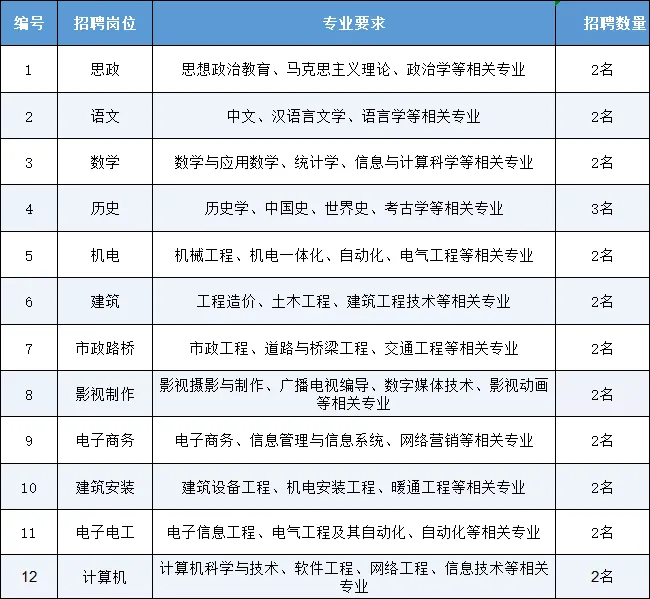 4.报名条件:具有高校教师资格证或高级中学(中等职业技术学校)教师资格;报考人员所学专业或教师资格学科或专业技术职务(职称)须与招聘岗位相符。