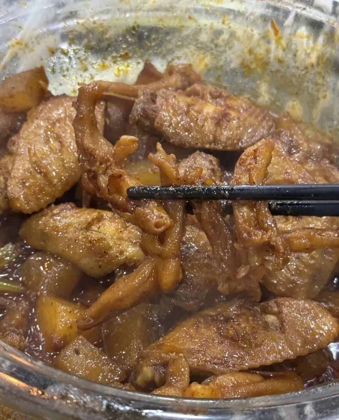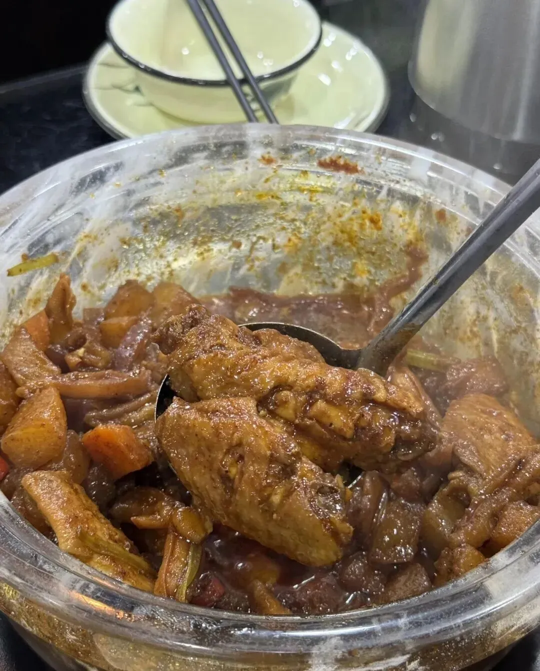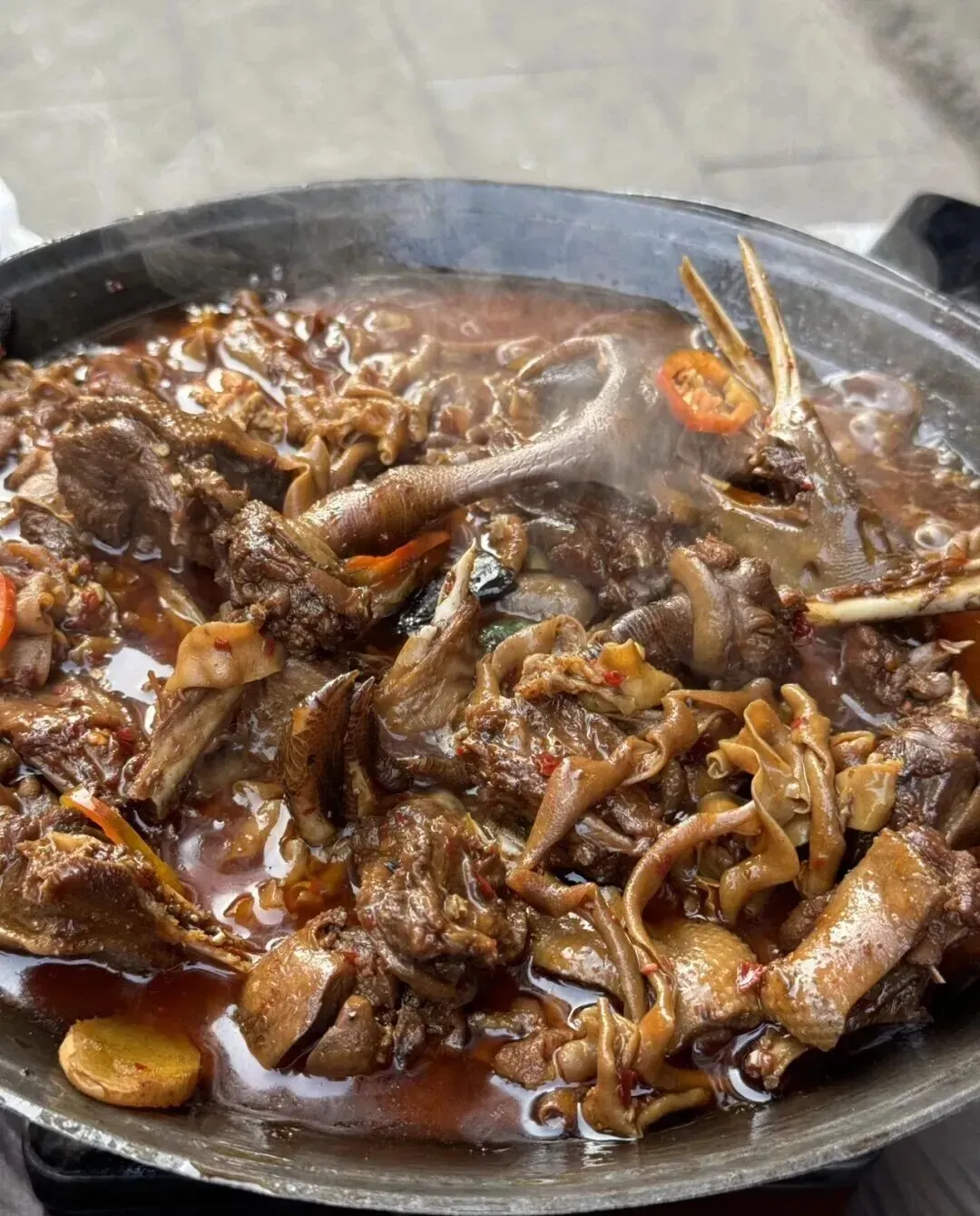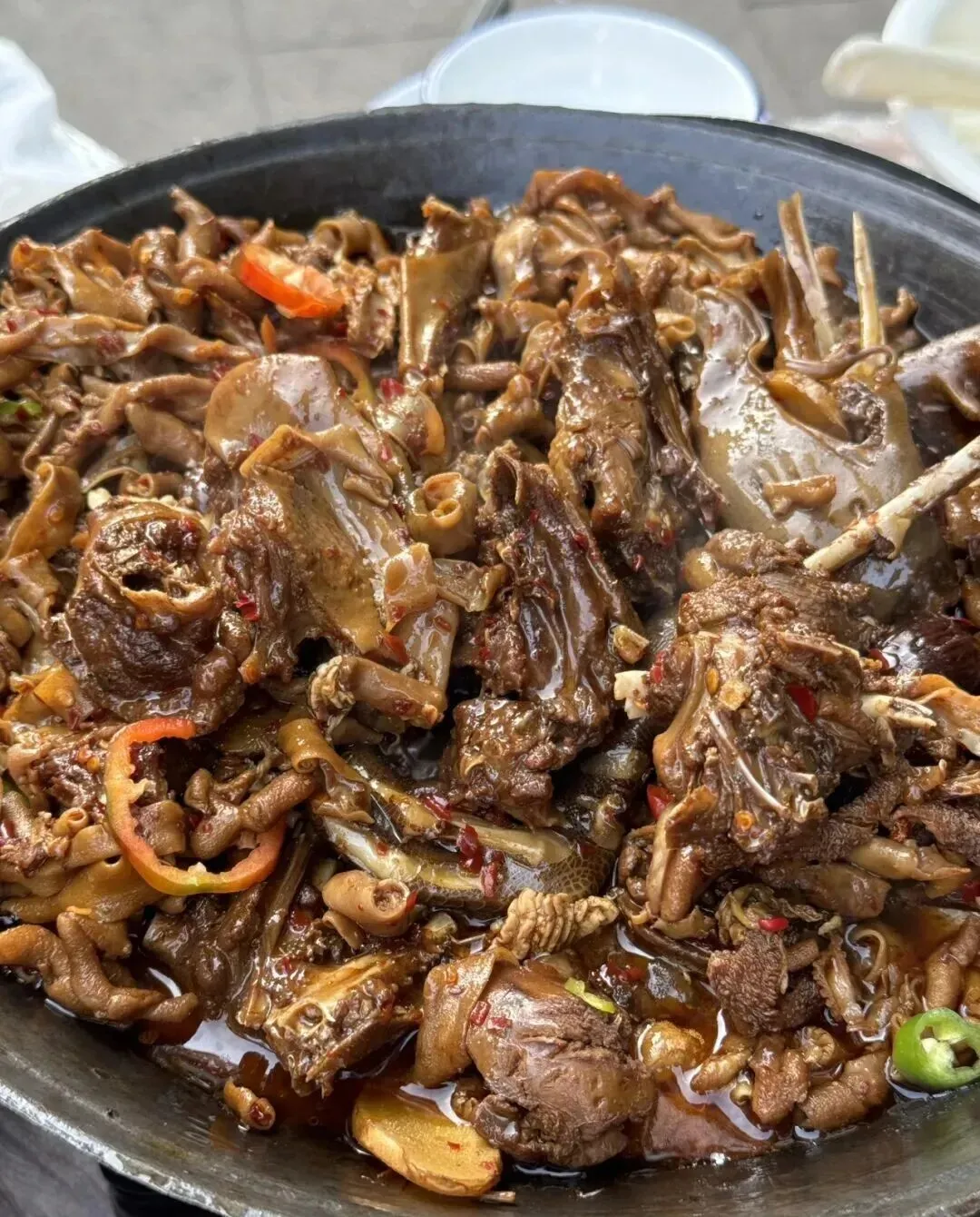 鸭肉卤得入味 , 带点麻带点辣 , 还有一丝丝回甜。 冬天配上热米饭 , 真的太下饭了。