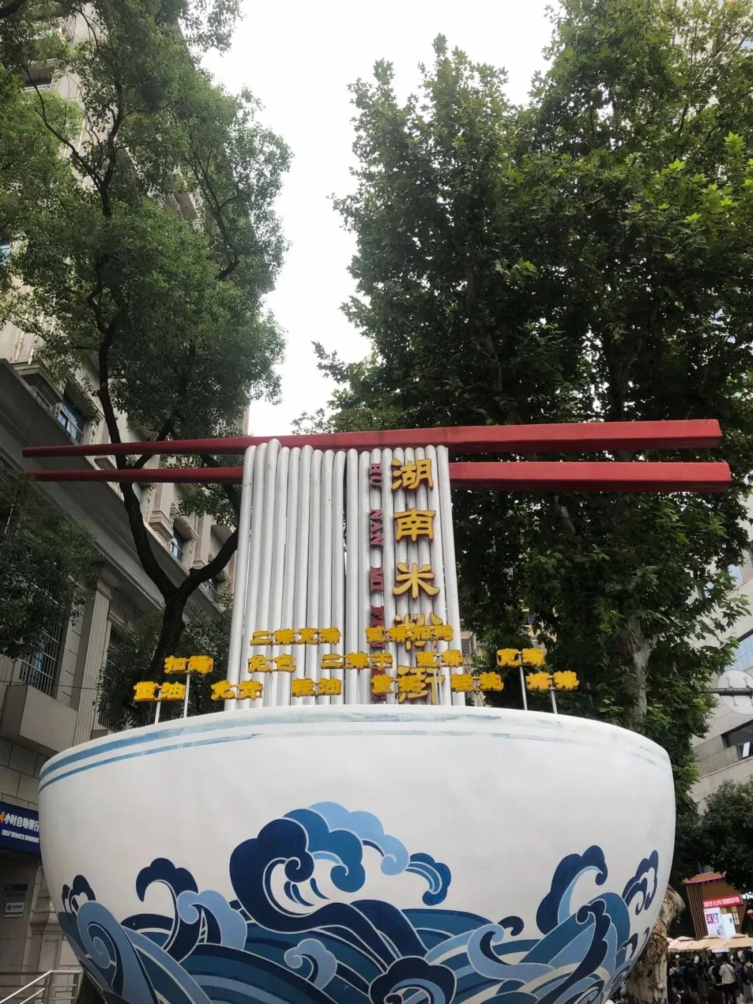 2.米粉街:湖南米粉街南接五一大道、北临八一路,全长约400米,湖南各市州最具特色的米粉云集于此。2020年10月,湖南米粉街正式开街迎客,两端入街口的米粉、筷子和大碗等造型成为市民争相拍照打卡的新地标。