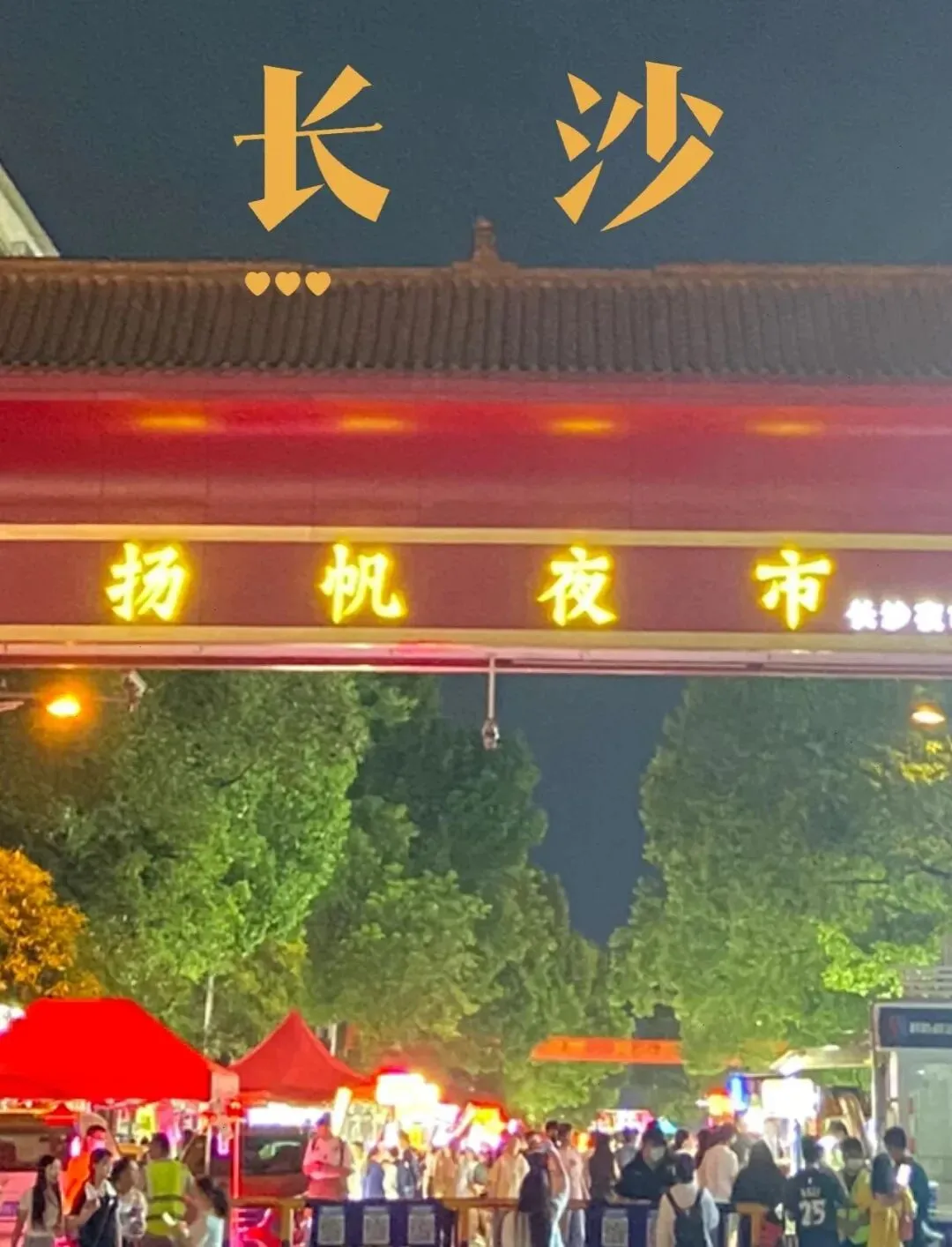6.扬帆夜市:扬帆夜市是位于湖南省长沙市芙蓉区东屯渡街道扬帆社区古曲路旁的夜间集市,2011年成立并被列为长沙市夜市规范点。该夜市占地呈十字形,南北长300米、东西长270米,设有1050米摊位区域,聚集370余家商铺,周边居民住宅楼密集,日均人流量约4万人次。每日18:00至24:00营业,采用统一帐篷式摊位,实行规范化管理。