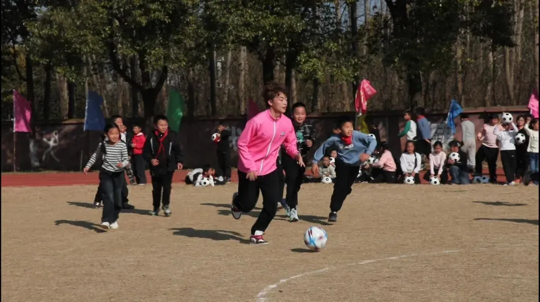 仪式结束后,三名队员来到三星咀中学与围庵小学,开展首次校园足球指导与交流活动。活动中,三位球员为学生带来专业的足球知识讲解、基础技术示范,进行趣味训练与互动比赛。他们通过亲身指导,激发学生们对足球运动的兴趣,传递团结协作、勇于拼搏的体育精神。