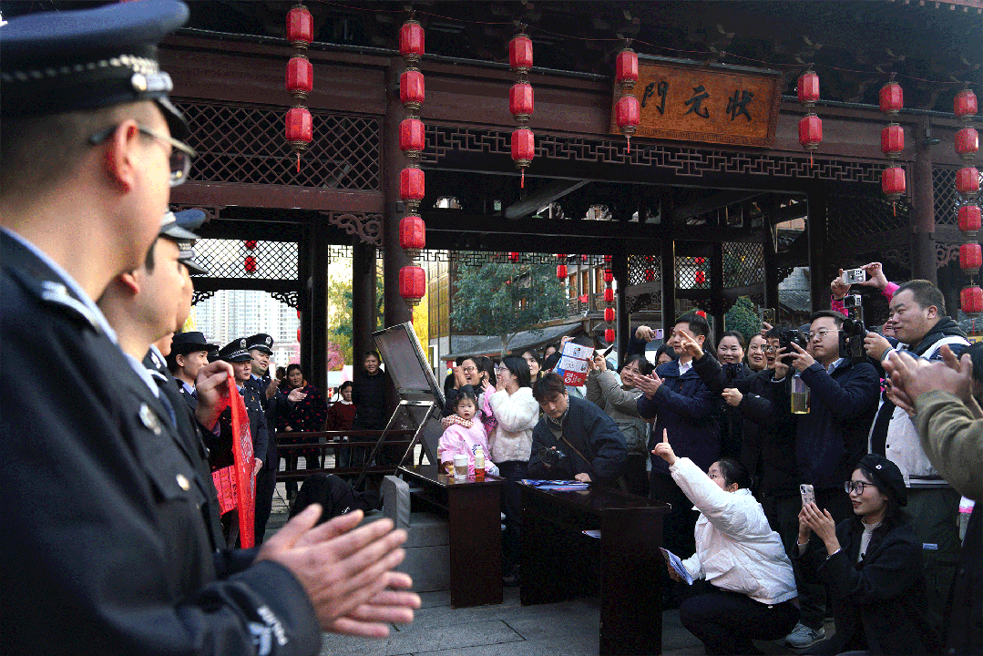 1月9日下午5时许,常德河街状元门人声鼎沸、热闹非凡,柳叶湖公安分局庆祝第六个“中国人民警察节”暨“110宣传日“主题活动拉开帷幕。湘超常德队夏宇航、黎维贤等六名明星球员亲临现场助阵,用球迷喜闻乐见的方式传递安全知识,让宣传活动既“接地气”又“有热度”。