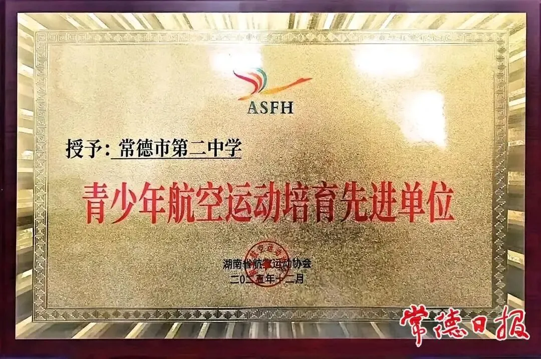 常德市二中相关负责人表示,学校将以此次获评先进单位为契机,进一步深化特色教育内涵,持续完善航空运动培育体系,全力搭建更广阔的科技实践平台,助力更多青少年点亮梦想。