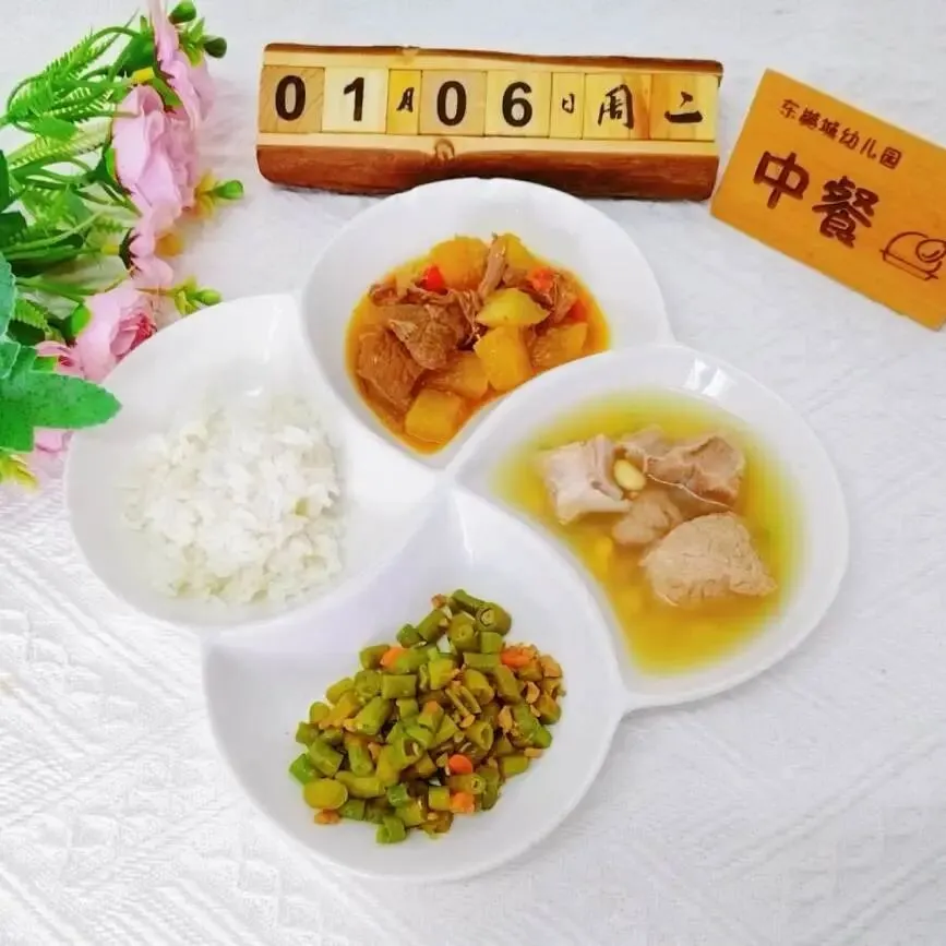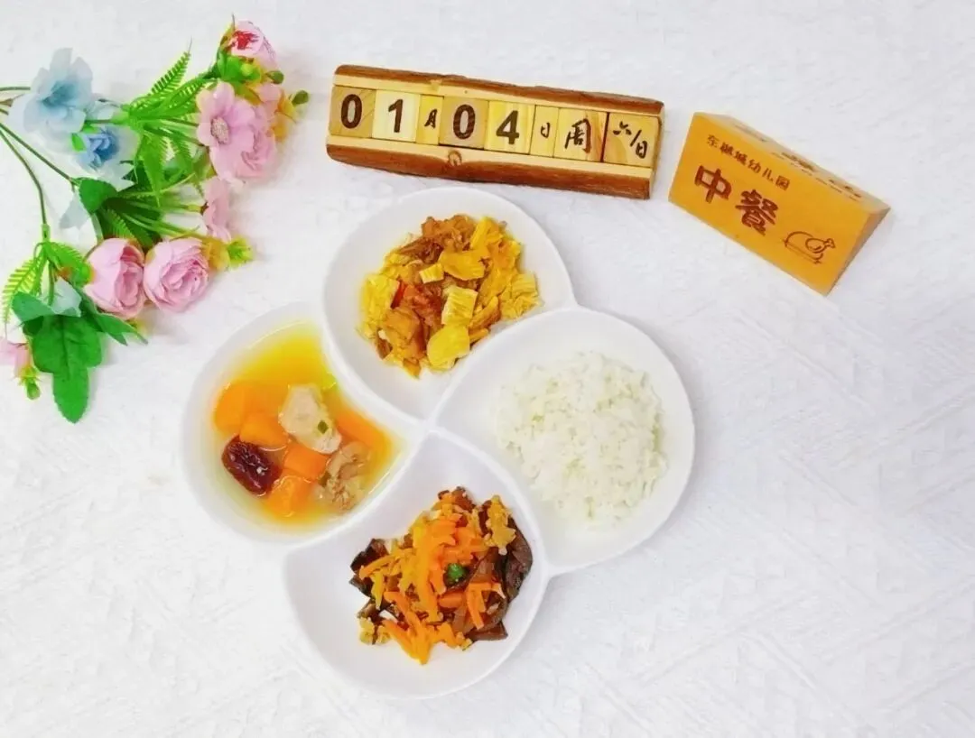 根据儿童生理需求,以《中国居民膳食指南》为指导,参考“中国居民膳食营养素参考摄入量”和“各类食物每日参考摄入量”,我园特制定带量食谱,食物品种多样化且搭配合理。根据季节挑选当季时令瓜果蔬菜、新鲜水果、肉蛋奶、谷物等,这些食物富含丰富的膳食纤维,进行科学配比,制定每周营养食谱,每周更新。
