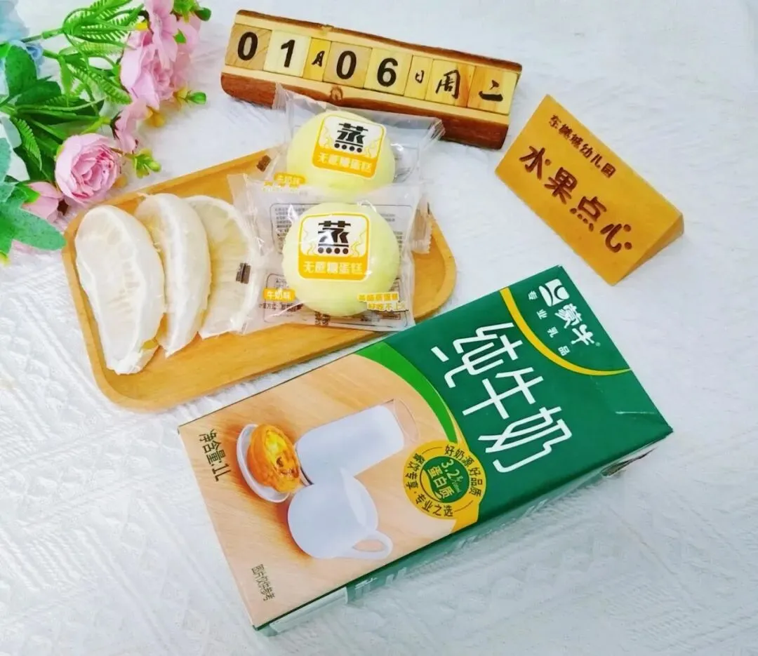 3-6岁学龄前儿童每天奶量约350-500ml,请家长在家每天给幼儿补充200-350毫升牛奶,适量水果和坚果。