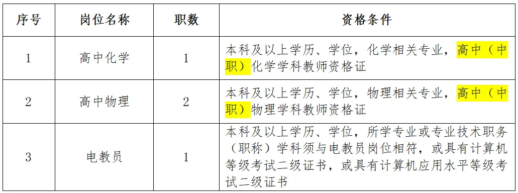 高中物理、高中化学教师岗位: