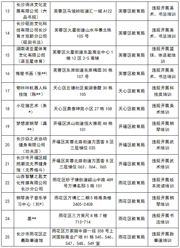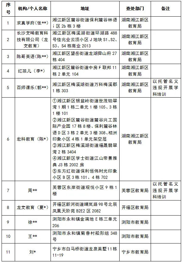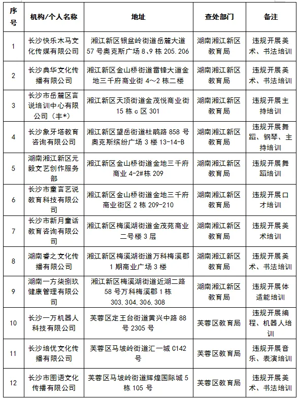 相关区县(市)教育局已责令上述违法违规机构(个人)进行整改(关停)。达到立案标准的,将按照《校外培训行政处罚暂行办法》予以行政处罚。