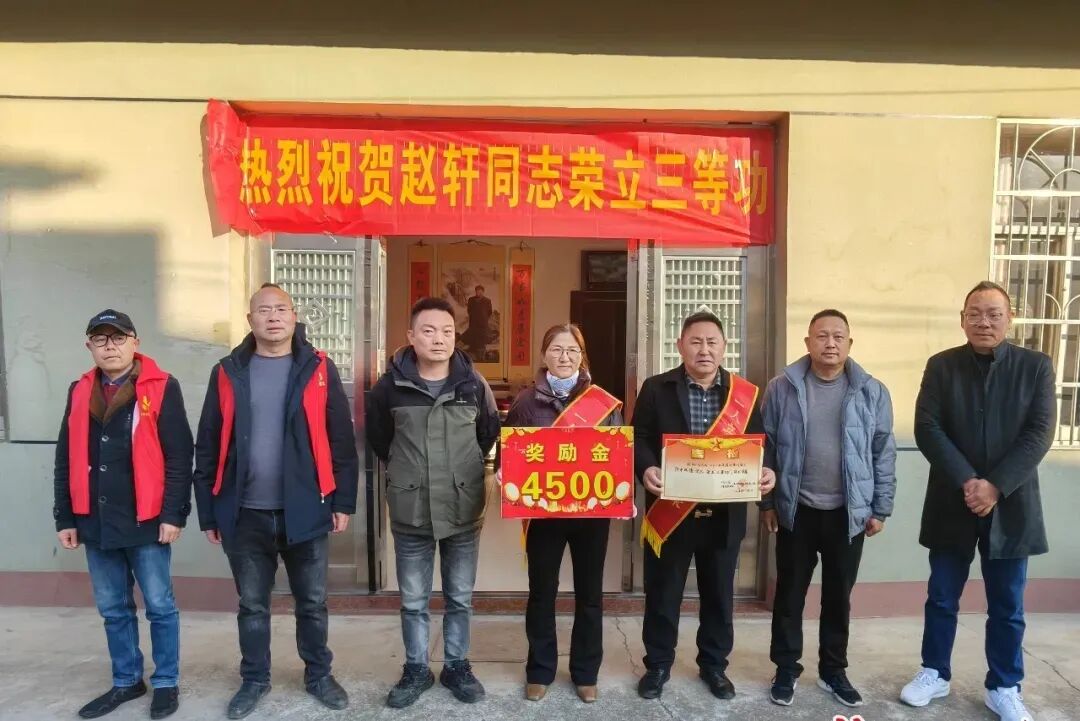 1月8日,在澧县澧南镇大堰村现役军人赵轩家门口一条写着“热烈祝贺赵轩同志荣立三等功”的鲜艳横幅格外醒目。