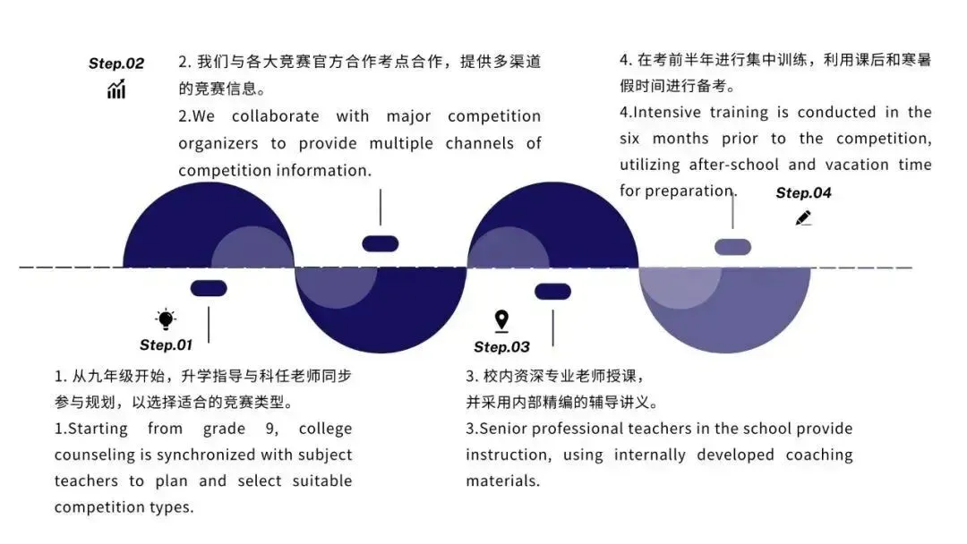 Our school is an official partner of multiple international academic competitions, allowing students to participate in various contests directly on campus. We also have a highly professional coaching team with an average of over ten years of teaching experience, providing strong guidance and support for students’ competition training and preparation.