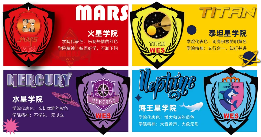 在WES,我们蕴藏着四座成长学院——火星、泰坦星、水星与海王星。每个学院由来自不同学部、不同年级的师生组建而成。