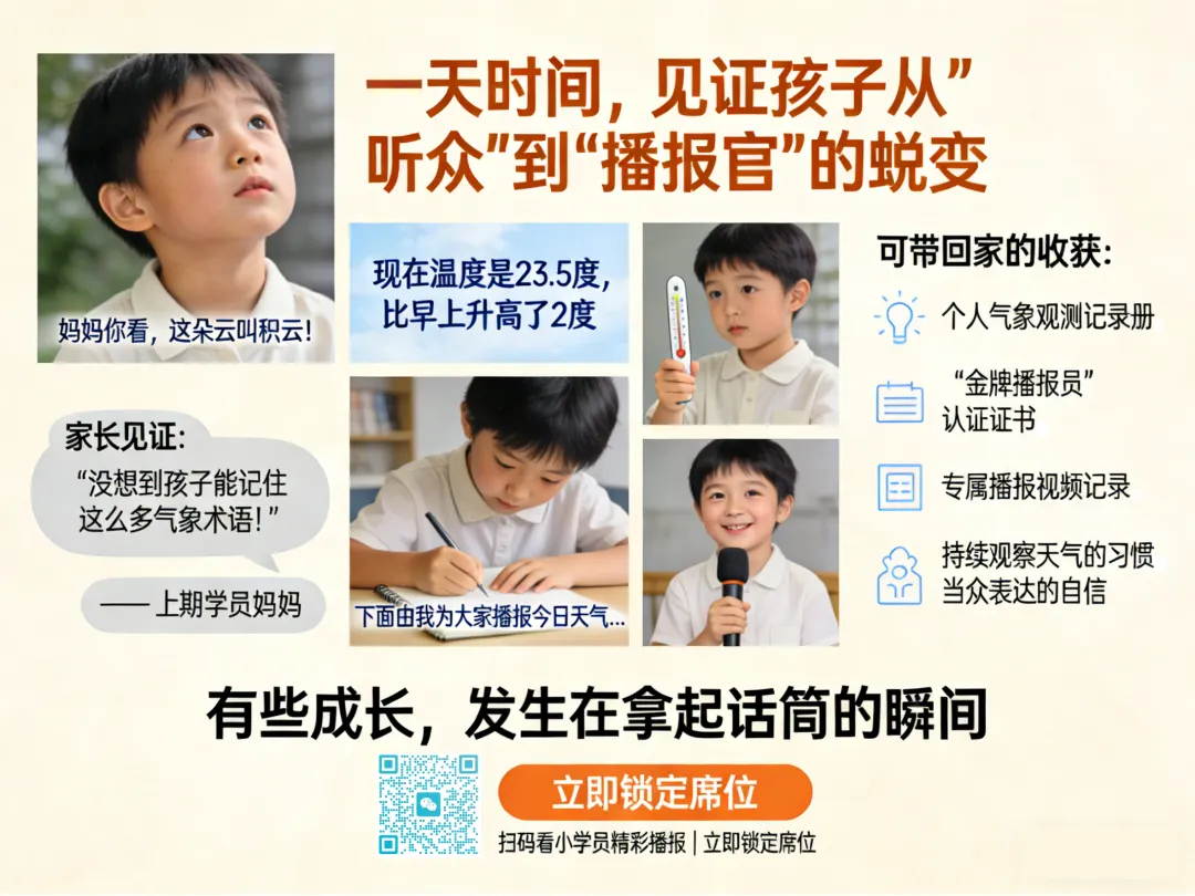 “孩子上完课第二天早上,居然看着窗外说‘妈妈,今天云层很厚,可能会下雨,我们带伞吧’。那一刻我知道,这堂课值了。”——上期学员家长 李女士
