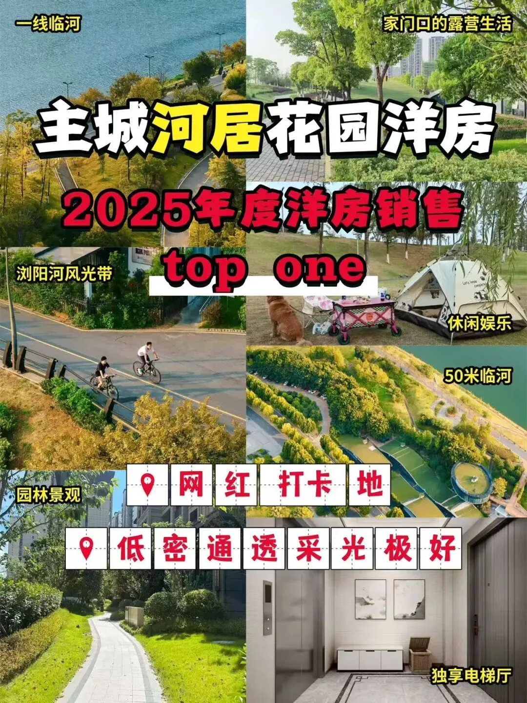2025年度洋房销售top one,河居花园洋房开启诗意生活。50米即抵浏阳河风光带,家门口即可露营、骑行、漫步,129-143平轻奢通透四房,满足品质居住需求。