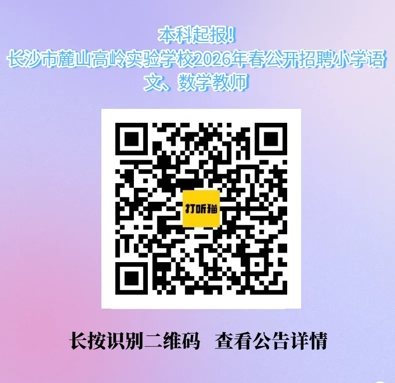 >【长沙招聘】本科起报!长沙市麓山高岭实验学校2026年春公开招聘小学语文、数学教师!