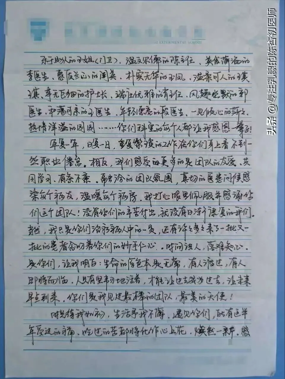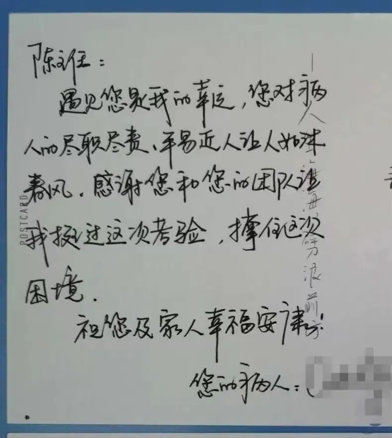 (陈主任治愈患者给他留言薄上留言)
