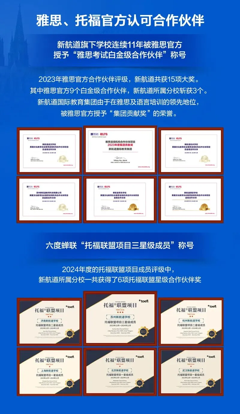2024英国文化教育协会宣布2023年度雅思官方合作伙伴评级,新航道一共被授予15个奖项,新航道所属分校斩获3个白金级伙伴荣誉称号。