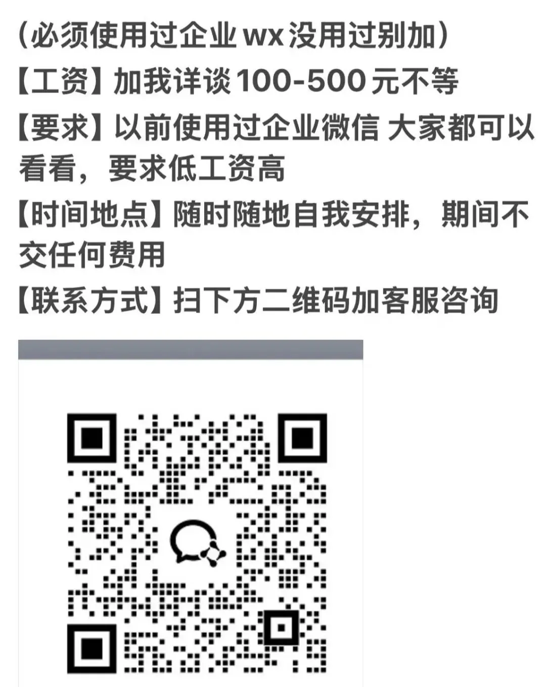 要求:18-45 岁男,无案底、非黑户,做到 1 月 31 号,配合加班