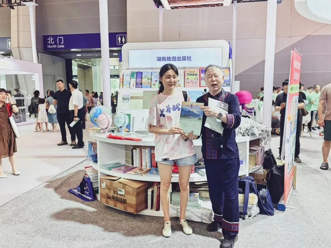 “书香中国,阅读之美”。第三十三届全国图书交易博览会于2025年7月25日至28日在重庆国际博览中心隆重举行。来自全国一千余家出版单位携十万种新书与广大读者见面。为了展示张家界独特的魅力,我在有关单位支持下带着张家界市游客中心工作人员与湖南地图出版社工作人员一起为刚出版的智慧旅游地图《点读张家界》推广而助力。为了吸引人们的注意力,我拿起扩音器唱起了桑植民歌与张家界阳戏,并介绍张家界与《点读张家界》的创新理念与实际功能作用。而结果是将出版界、新闻界以及广大读者高热度聚集在湖南地图出版社展台前,有人索取《点读张家界》,有人主动加我微信与合影留念,还有记者联系出版社工作人员要釆访我。而现场有《人工智能的边界》一书作者、上海复旦大学计算与智能创新学院教授张军平先生也在他的著作上写下“张家界流云”并与我热情地合影留念。湖南地图出版社社长郭有红也亲自到场向人们介绍《点读张家界》创新与引领作用。他还认为,我与张家界市游客中心的工作人员到现场助推很有积极意义。后来,湖南地图出版社又提供了500份《点读张家界》用于我们“湘渝有你”旅游交流活动。重庆市导游协会党支部书记徐文峰见证了张家界市游客中心与重庆市导游协会签订了利用高铁拉动旅游的合作协议后表示,让重庆市二万余名注册导游多了解张家界,宣传张家界,让更多的人到张家界旅游。旅行商代表王金涛出席“湘渝有你”联谊活动并表示要利用《点该张家界》推广优势,多为张家界送客。一张图也成了连接重庆与张家界旅游的友谊象征。