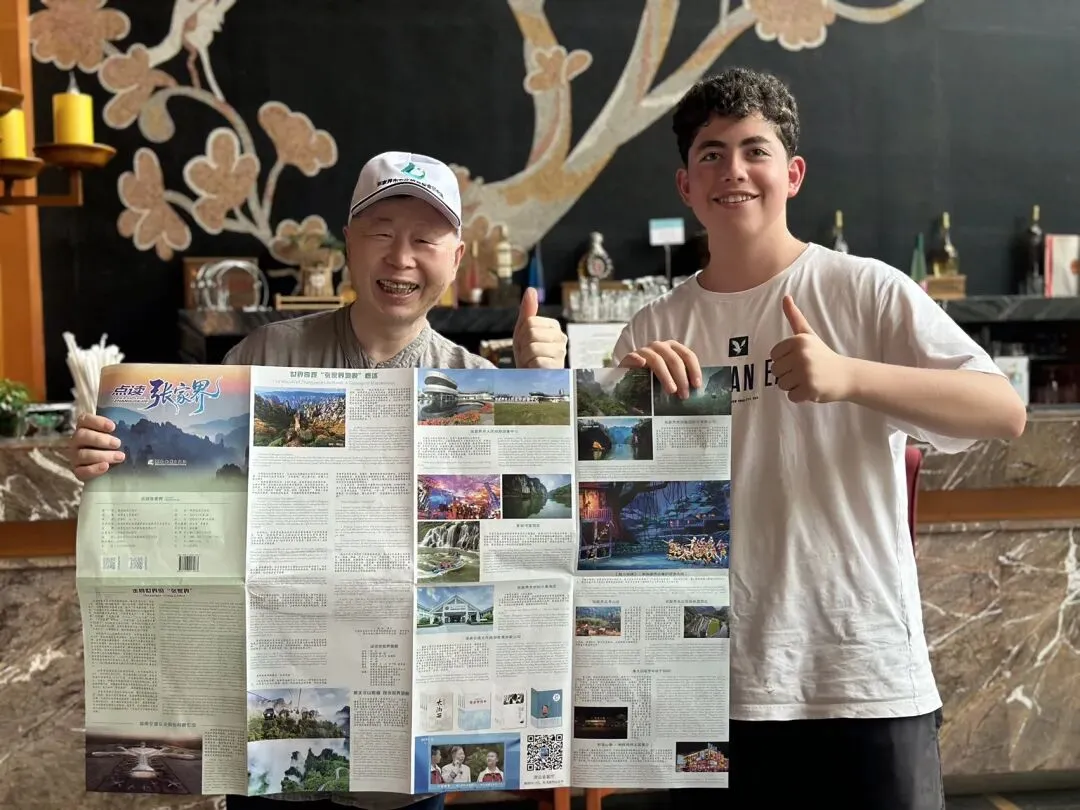 “驾着绿云飞来,踏着绿浪涌来;我们来自五湖四海,我们相逢在张家界!”从长沙黄花国际机场到张家界荷花国际机场,从出发贵宾厅到国际到达厅;从民航大吧车到机场酒店前台等多处可以让海内外游客捧阅《点读张家界》,只要用手机轻轻一扫二维码,那峰林奇观与民俗风情皆可读可听可看,被人称为“掌上向导”;听着地质学专家任舫博士用流利的外语讲“张家界地貌”是真正的“国际范儿”。为了促进航空与旅游融合发展,充分利用航空优势展示张家界形象;我代表湖南云逸文化旅游发展有限公司于2025年4月10日与湖南空港实业股份有限公司董事长罗刚达进行交流后达成共识并与该公司签订合作协议。罗刚先生于2025年7月22日出席“空港实业航旅融合暨《点读张家界》智慧旅游地图首发式活动并在讲话中称:“我公司与湖南地图出版社、湖南云逸文化旅游发展公司进行合作,并推动《点读张家界》智慧旅游图在长沙、张家界两大机场发行,通过线上线下并行,出版、旅游和航空的多维联动;是构造航空文旅线路及产品和服务体系,也是实现航空“引客入湘”,加快建设世界旅游目的地的创新之举”。《点读张家界》火爆出圈,它将成为中外游客到张家界旅游的好伴侣!