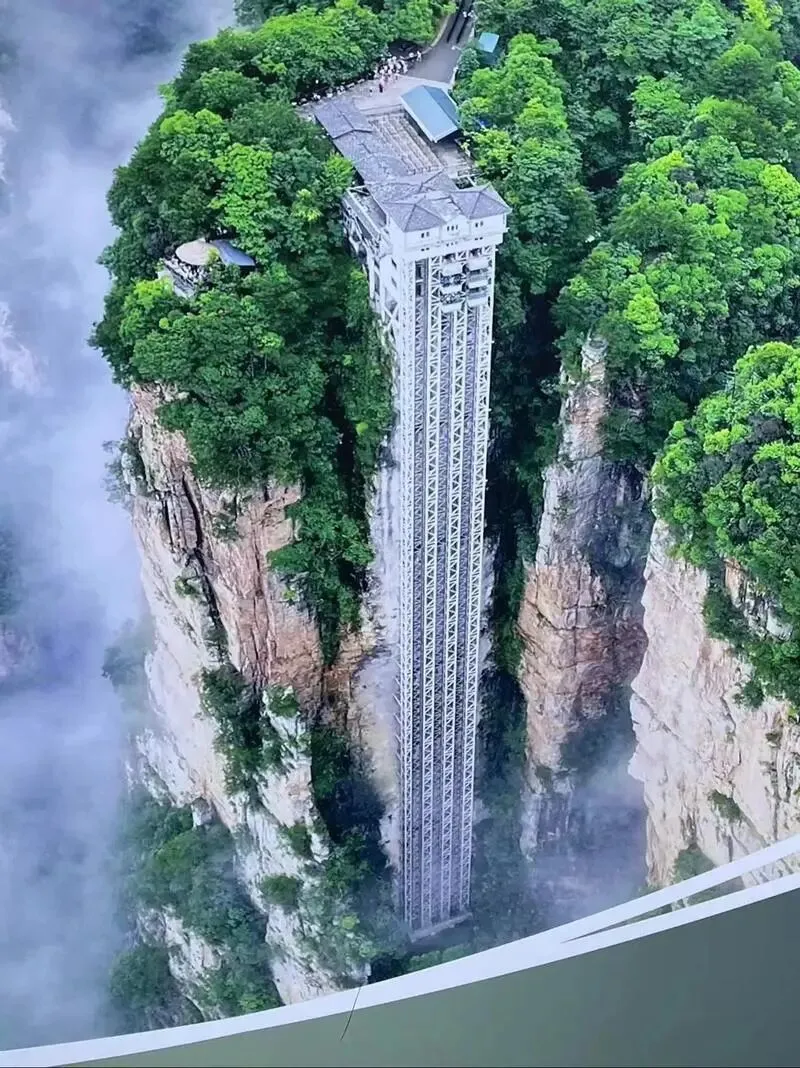 百龙天梯能省一截上坡,风大就不站边上,拍一张就走。