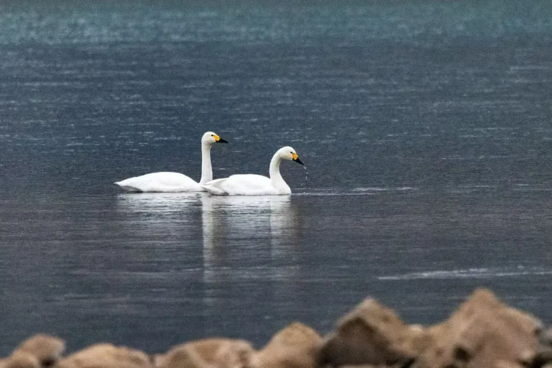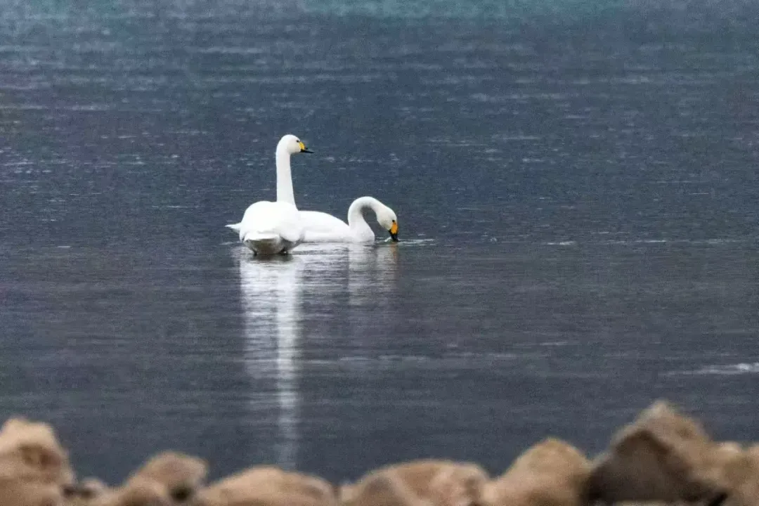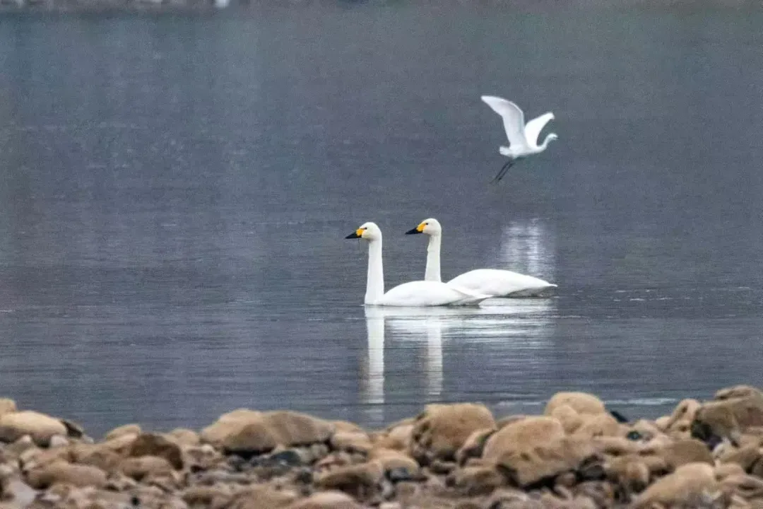 “当时只是随手取景,没想到镜头里出现了熟悉的白色身影,赶紧换上长焦镜头确认,真的是大天鹅!”周女士难掩激动,“在城区河段能见到它们,实在太意外了!”她迅速按下快门,将大天鹅游弋、嬉戏的灵动瞬间定格。镜头中,两只大天鹅时而低头觅食,时而结伴游向水中央,与偶尔掠过水面的白鹭相映成趣,构成一幅人与自然和谐共生的绝美画卷。