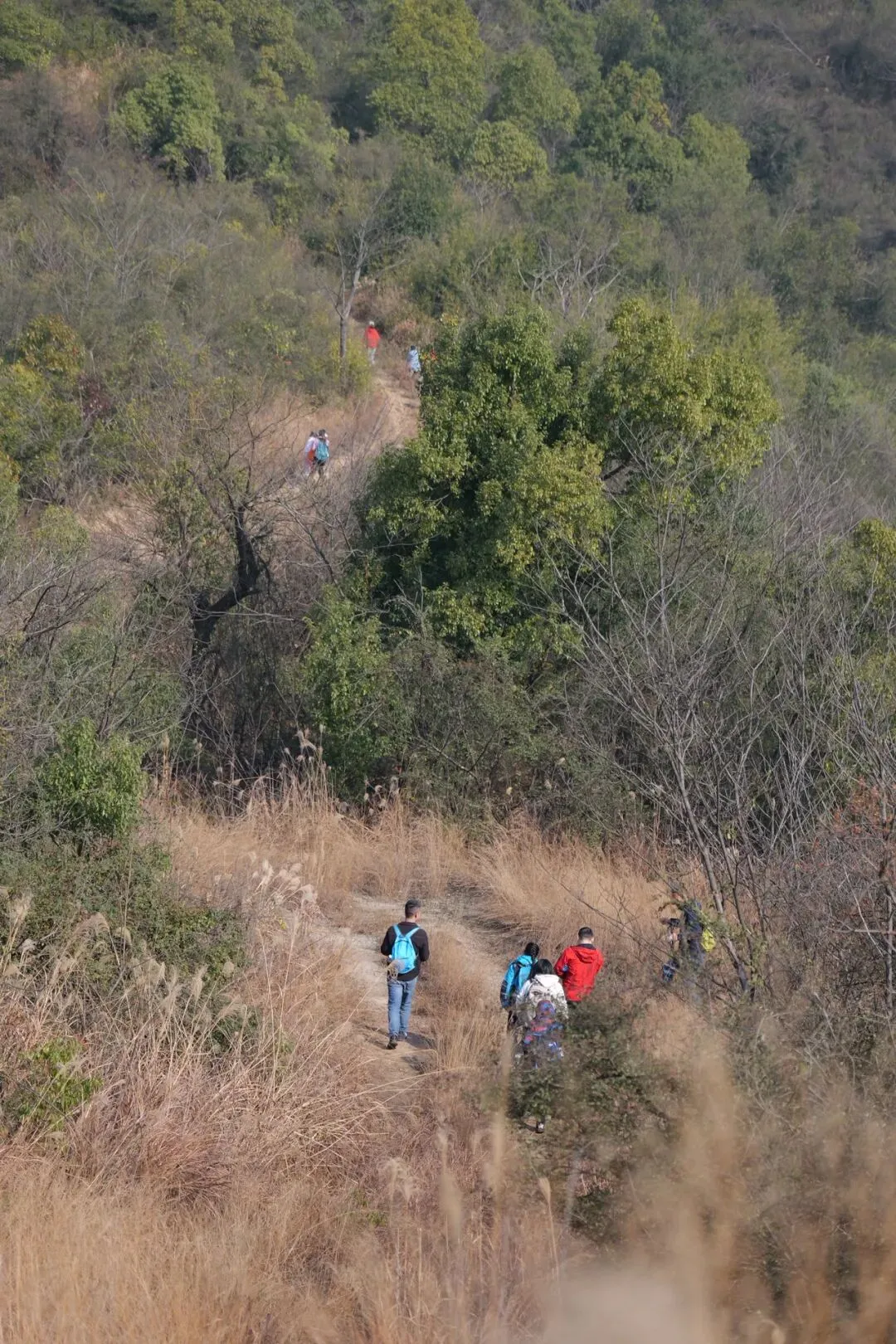 今日队伍浩浩荡荡,大家都说冬日户外爬山是真舒服,晒着太阳暖和,走在树下又荫凉。