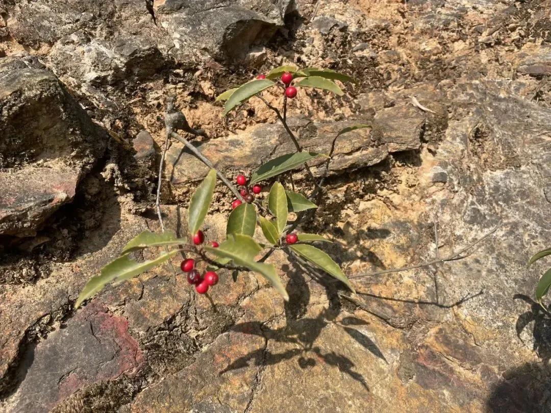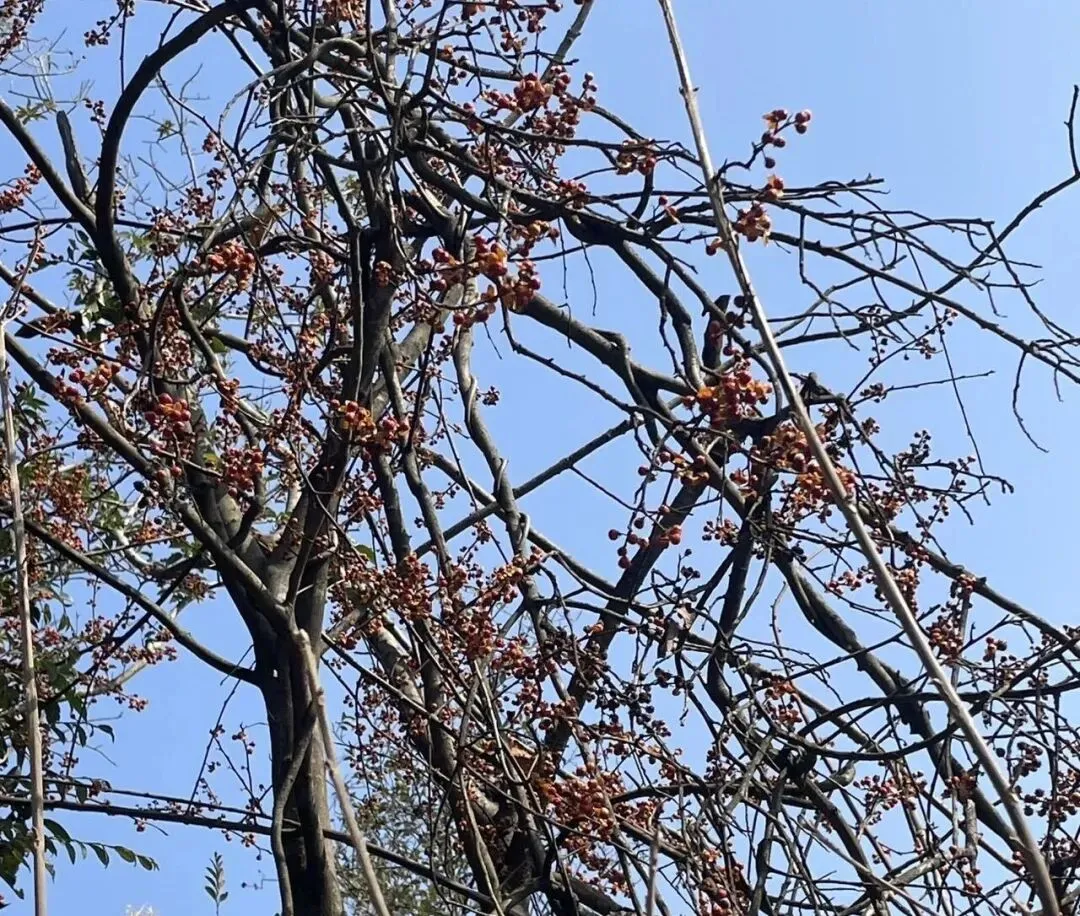 今天大王山上见到最多的植物是各种蔷薇刺,山木香、金樱子和野蔷薇,再就是路两旁很多的南蛇藤和野花椒,岩石上有结了红果的铁冬青。山中有一片梧桐群落,树干青绿色,大树下很多小梧桐树苗。有些植物分布的区域性很强,这片山向西到大山冲,分布较多的有铁冬青,大王山里几乎没怎么看见映山花、小叶赤楠等浏阳很常见的植物。绣线菊,正常花期是4、5月,白色小花一簇一簇。冬天花市里卖的喷雪花枝条就是锈线菊。象鼻窝也见过有锈线菊。糯米条开过花后的果序也像一束花,薄薄的翅果,没有仔细观察过种子长什么样,下次补上。苦楝树挂满了果很好看,大自然中简单的重复总能塑造壮丽感。果子像小酸枣但不能吃,好在初夏开满的紫色花很香。铁冬青挂着红果长在石壁上。很小的一棵,根上还结了个瘤,一长细细的根扎在石头里,挂着红果子,天然的盆景。南蛇藤挂满裂开的果,吐着红色种子。剪枝插在高脚花瓶中垂下来应该漂亮。藜蒿有些嫩芽已经开始长了,在湘江滩涂和巴溪洲临水区都能找到。藜蒿叶子小叶比柴蒿长,毛少显得更光滑。记着位置,明年开春后来采。枸杞苗在草从中抽出新枝,仔细地在草丛下找,也没找到红色枸杞。现在气温低,生长慢,嫩牙少。等到春天生长旺季,可以过来采嫩芽下汤。