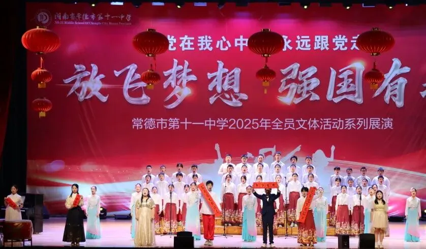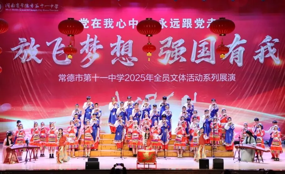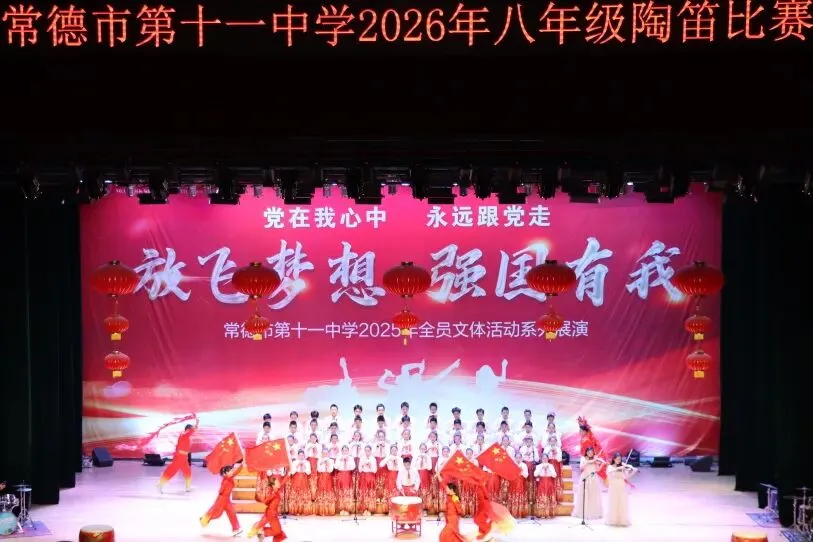 台上乐声悠悠,神采飞扬;台下掌声阵阵,热情满溢。清脆的陶笛,奏响少年意气的昂扬;灵动的编排,勾勒传统文化的绵长;默契的合奏,演绎青春岁月的滚烫。十一中的师生们多才多艺,在舞台上展现了他们对文艺的热爱和对美好青春的追求。2026年1月8日,常德市第十一中学八年级陶笛合奏比赛火热开演。各班学子怀揣对音乐的热爱、对传统文化的敬意登台亮相,以《龙的传人》为核心旋律,融合多元风格曲目创意演绎,尽显少年昂扬风采。
