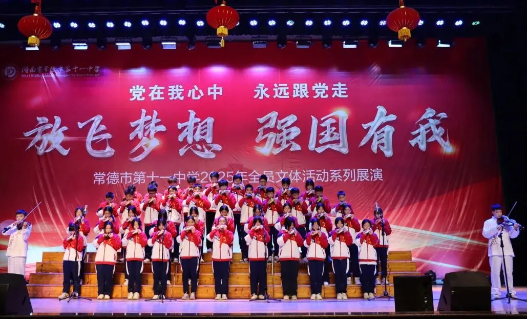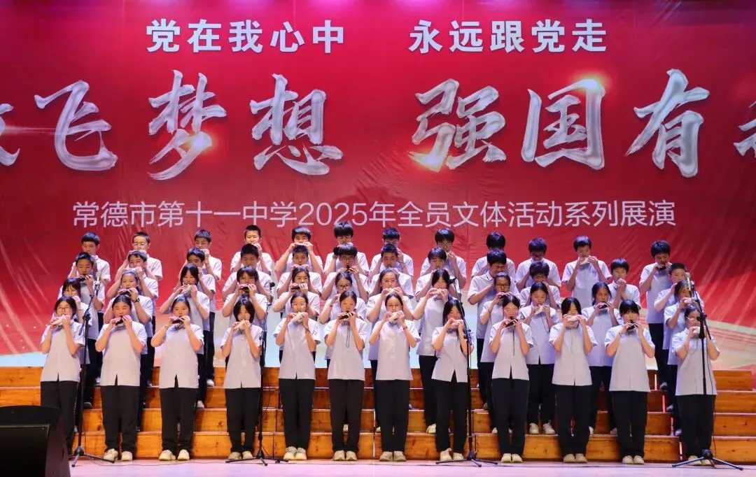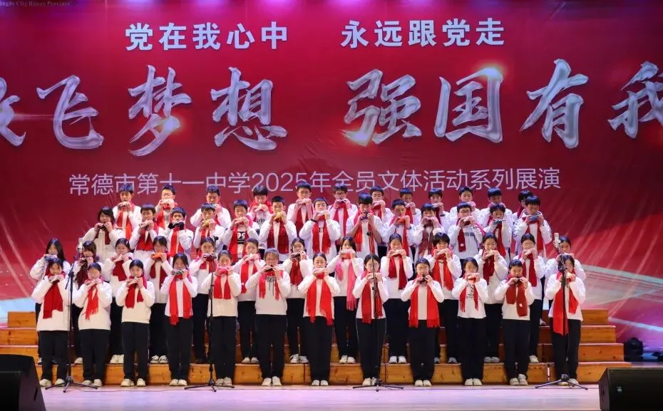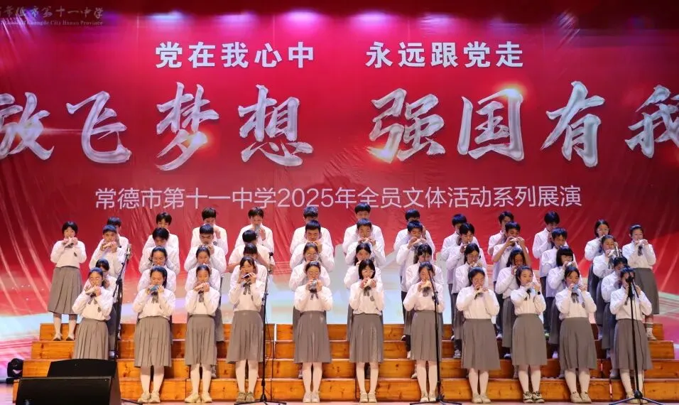 悠扬的旋律仍在回响,少年的朝气久久未散。本次比赛为本学期全员文体活动画上圆满句号,不仅是学子艺术才华的集中展示,更是常德市第十一中学以陶笛之声践行五育并举理念的生动实践。同学们在旋律里感受美、演绎美、创造美,在合奏中学会配合、懂得担当、凝聚力量,正是美育浸润心灵、德育融入成长的最佳写照。小小陶笛奏响青春壮志,激励十一中学子在成长之路上步履不停,继续高歌前行。