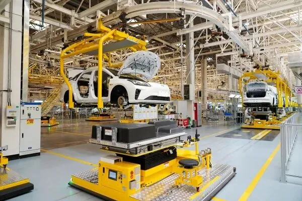 △ 广汽埃安总装车间汽车生产线。