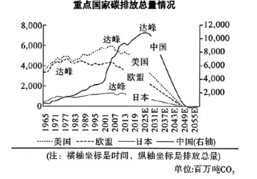 (1)从图中“碳达峰”的数据比较,我们发现中国相较美日等国,;(2 分)