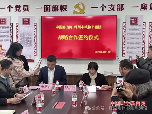 2024年3月13日下午,林州市政协书画院与中国韶山网举行签约仪式,中国韶山网红色教育培基地挂牌。