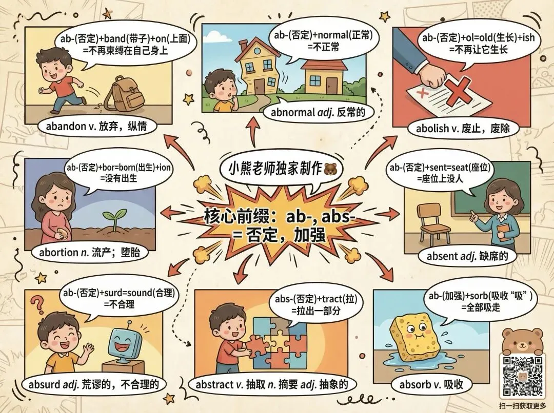有需要的家长朋友,可以扫描下方二维码,并在评论区留言【词根词缀】,添加微信领取我的词根词缀教材试看资料。