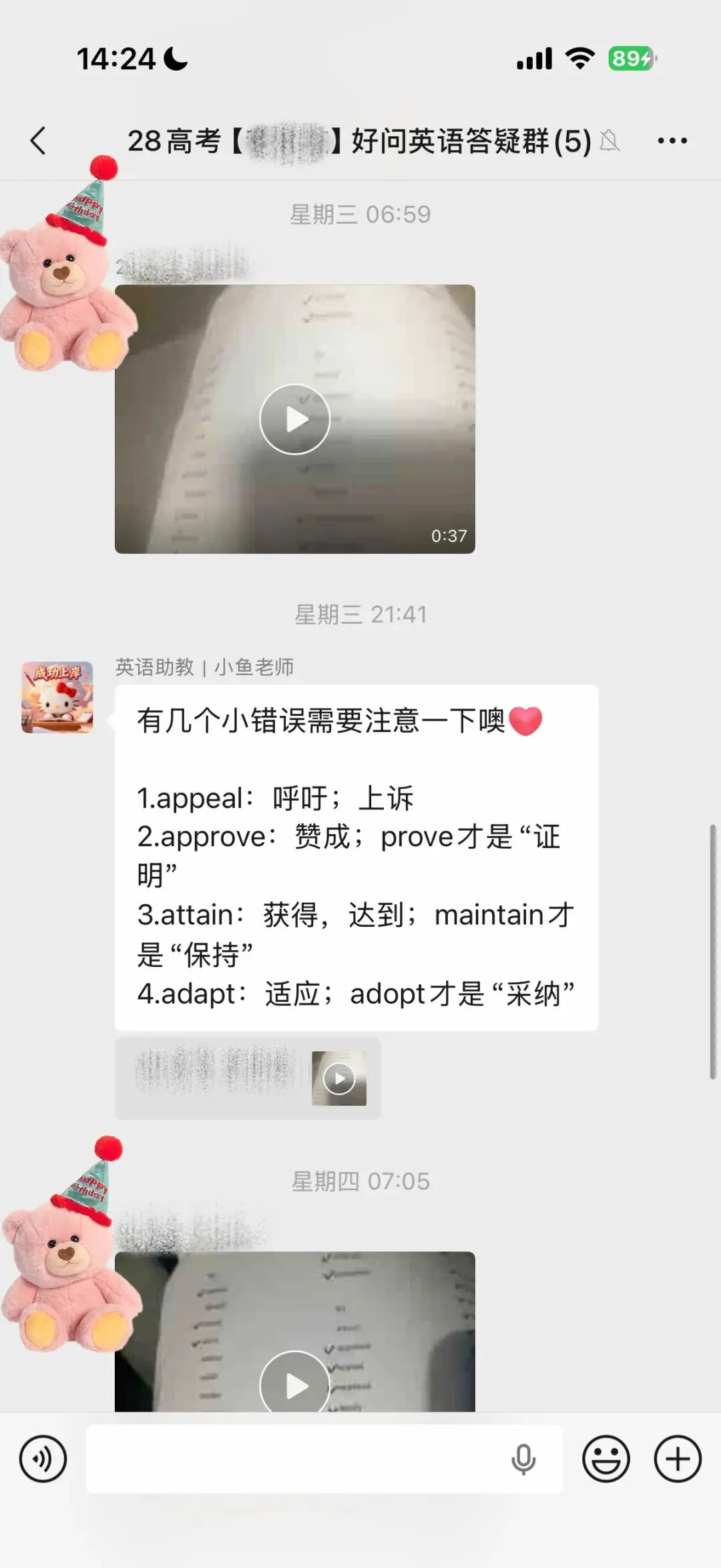 所以每次讲完的单词,我都会要求孩子按我改良过的艾宾浩斯曲线循环复习,每天都要在群里打卡过关,课前课后也都会一对一抽背检测。