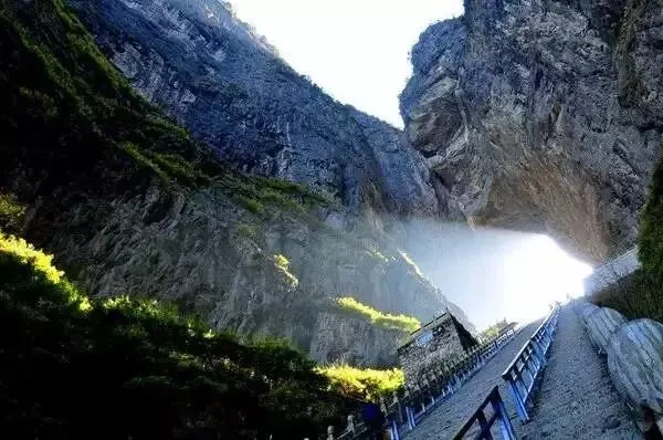 通往天门洞的盘山公路被称为“通天大道”,九十九个弯,暗合了“天有九重,云有九霄”之意。大道两侧绝壁千仞,空谷幽深,层层叠起,“ 堪称天下第一公路奇观 ”。