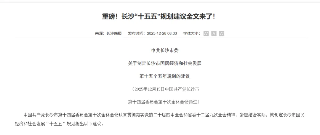 近日,长沙市政府公布了《长沙“十五五”规划建议》全文,长沙未来五年的发展蓝图,我们来一起看看重点。1、长沙进入特大城市行列,长株潭都市圈成为中部首个国家级都市圈(目前全国有19个)。合理的房价涌入了大量人口,包括湘潭和株洲,现在长株潭融城其实是建立在强省会的基础上,给长沙代际扩张空间,与此同时株洲活力逐渐减弱,湘潭已成暮年。2、肯定了“三个高地”,“4433”现代化产业体系,湘江科学城建设成果。这个目前能看到维持优势的行业还是工程机械、轨道交通、航空动力。对接一带一路方面确实有进展,深化了自贸试验区改革,尤其在中非经贸方面卓有成果。至于其他的新兴和未来行业还在发展的路上,除了传统的北上广深,进取的最快的是杭州。湘江科学城可以说是下一个五年,长沙重注的科学中心,希望能真正靠研发参与全球竞争。3、连续18年获评中国最具幸福感城市,长沙一直做得不错,居民收入用于个人消费的占比相对较高。第二部分主要是描述了目前面临的问题,发展的战略机遇和风险挑战并存,不确定难预料因素增多。1、国际上看,大国博弈日益复杂激烈,新一轮科技革命和产业变革加速突破,这里主要指的中美政经关系,以及共同押注的人工智能竞争。目前美国算力占优,中国用户基数算量占优,双方竞争难舍难分。与之匹配的电力资源,中国一直遥遥领先,从这点来看,互联网之后的人工智能时代,中国也不会落后。小编也始终认为,现在的世界丛林,真正能通过科技创新扳手腕的,只有中美而已。这点长沙机会在哪呢,答案就在算力。2、长沙目前能抓住的主要发展机遇。一是强省会战略与长株潭一体化。二是第十六届全国运动会为城市长远发展带来重大契机。3、目前新兴产业壮大和未来产业布局有待加快,这点来说,新能源带起了安徽;人工智能、机器人、游戏、脑机接口方面,杭州四小龙全面领先;核聚变还是在安徽。长沙在新兴产业已经落后不少。1、继续深耕制造业高地,一是工程机械拓展农业机械、应急装备机械、矿山机械。二是建设全国领先的新能源汽车及零部件产业基地、智能网联汽车创新高地。三是提高金融业贡献率。前两点是根本,现在本身有基础,第三点最难,没有政策土壤也没有先天条件。2、培育壮大新兴产业和未来产业。这里主要围绕几个方面,一是聚焦超算,长沙“智谷”2026年将投产,布局得刚刚好。二是低空经济,大王山已经布局从研发到基建配套的全产业链。三是大健康,这点长沙其实有高校,有临床资源,有平台,没理由做不强。但从现状来说,生物医药方面差武汉一大截。3、改造升级传统行业,这里我认为农业是有基础土壤的,农业有研发,有投产,是完整的产业链闭环,也是国家基础产业之一。类似我们常听的美国,巴西大豆,就是他们的支柱产业之一。其次是文旅行业,长沙的网红、市井属性,每年带来了大量游客,但是现在大家除了橘子洲,岳麓山,五一路等核心景点,北城的铜官窑,南城的大王山文旅,建设上钱花了不少,去的人不多,ip还需进一步培育。至于浏阳烟花,现在主要干出口。赛事经济可以依托湘超和全运会场馆进一步赋能。4、发展新质生产力,聚焦“1+2”国家实验室体系,这里的1指的是国家实验室--天隼实验室。2指的岳麓山实验室,太行实验室。种业、航空航天、能源等领域国家实验室基地加快在湘落地。支持4+4科创工程,岳麓山实验室、岳麓山工业创新中心、湘江实验室、芙蓉实验室“四大实验室”以及国家超级计算长沙中心、大飞机地面动力学实验平台、力能实验装置、航空发动机冰风洞装置“四个重大科学装置”建设。这几个实验室,报告中用了很大篇幅,而且没有一句废话,可以说是长沙还称得上创新城市的核心所在,也是真正孕育能参与国际竞争的平台。5、加强科技创新与产业创新深度融合,将科技转化应用,实现正循环。6、支持民营经济,这块写的泛,主要还是改善营商环境,剩下的靠企业家自己的主观能动性。民营经济稳社会就业根基,不可谓之不重,只是当今环境错综复杂,这点主要跟随国家的政策措施。7、全面提升对外开放水平,高标准建设中国(湖南)自由贸易试验区长沙片区,推动国际航空客货运、中欧班列、中非经贸博览会创新发展。8、建设国际消费中心城市,提质中心商圈,发展区域商圈,引进更多品牌,培育夜间经济、国货潮品、湘菜美食、康养运动、数智体验等新消费场景。9、城市发展方面,基本延续十四五的规划,“一主两副多组团”,高水平建设浏阳、宁乡两个城市副中心,增强城市两翼的发展支撑作用,加快南城融城步伐。接下来说了老旧小区改造和城市更新,最后推动黄花机场T3航站楼、高铁西站、长赣高铁、港口及湘江航道改造等基础设施建设。在整个十五五规划里面,对于房地产板块来说,基本与国家战略保持一致。更多是后房地产时代,不再整更多概念,房地产也不是长沙未来的主要发展方向。这点我看很多博主硬扯上去,还列出了不少板块、楼盘的利好,我是真没怎么看出来。其余说的是一些基层治理,就不再赘述了。从通篇的建议来看,小编感觉更多的是稳根基,在此基础上,着力在创新方面寻求突破,积极在新质产业布局,孵化。一座城市被未来的历史铭记,需要一次科技迸发的赋能,可能影响这座城市数十年的发展,甚至影响国家前进的脚步,长沙