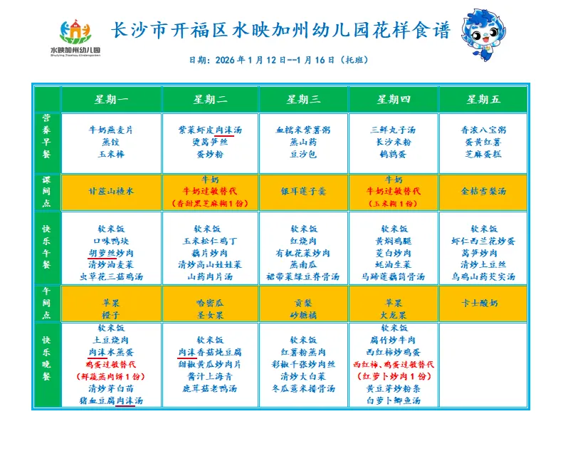 托育班幼儿食谱
