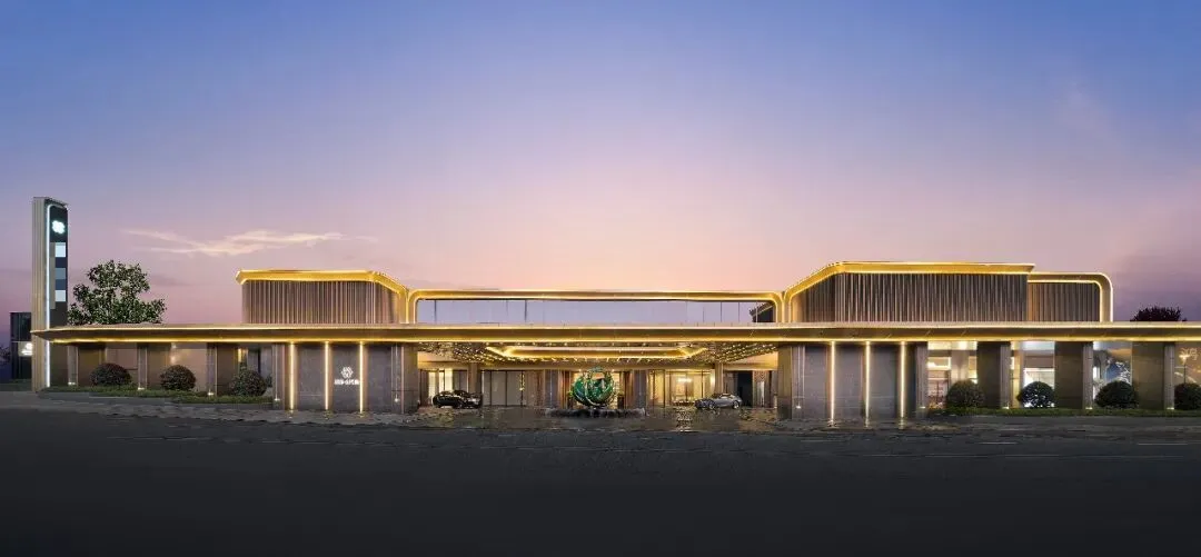 长74米、高10.6米超级门楼界面,由爱马仕石材+贵气仿古铜色金属立面打造,配备环岛落客区,公建化外立面,统一封窗交付。