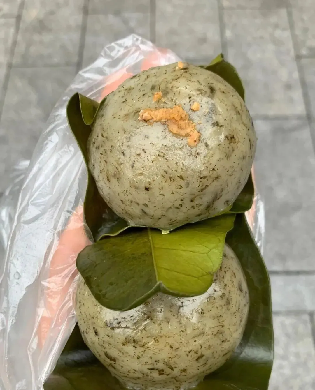 当地人跟我说 , 小时候他们经常拿这个用油煎着吃 , 外皮煎到微微焦脆 , 里面还是软糯的 , 想想就流口水。