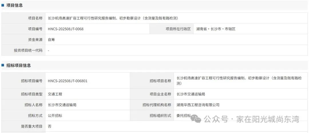 长沙机场高速扩容工程可行性研究报告编制、初步勘察设计 (含测量及既有路检测)(项目名称)长沙机场高速扩容工 程可行性研究报告编制、初步勘察设计(含测量及既有路检 测)标段勘察设计招标长沙机场高速扩容工程,起于万家丽路,终于黄花机场T2航站楼西侧机场大道,招标项目路线里程长度约19.4公里,投资估算约38亿元,其中建安费约26亿元。
